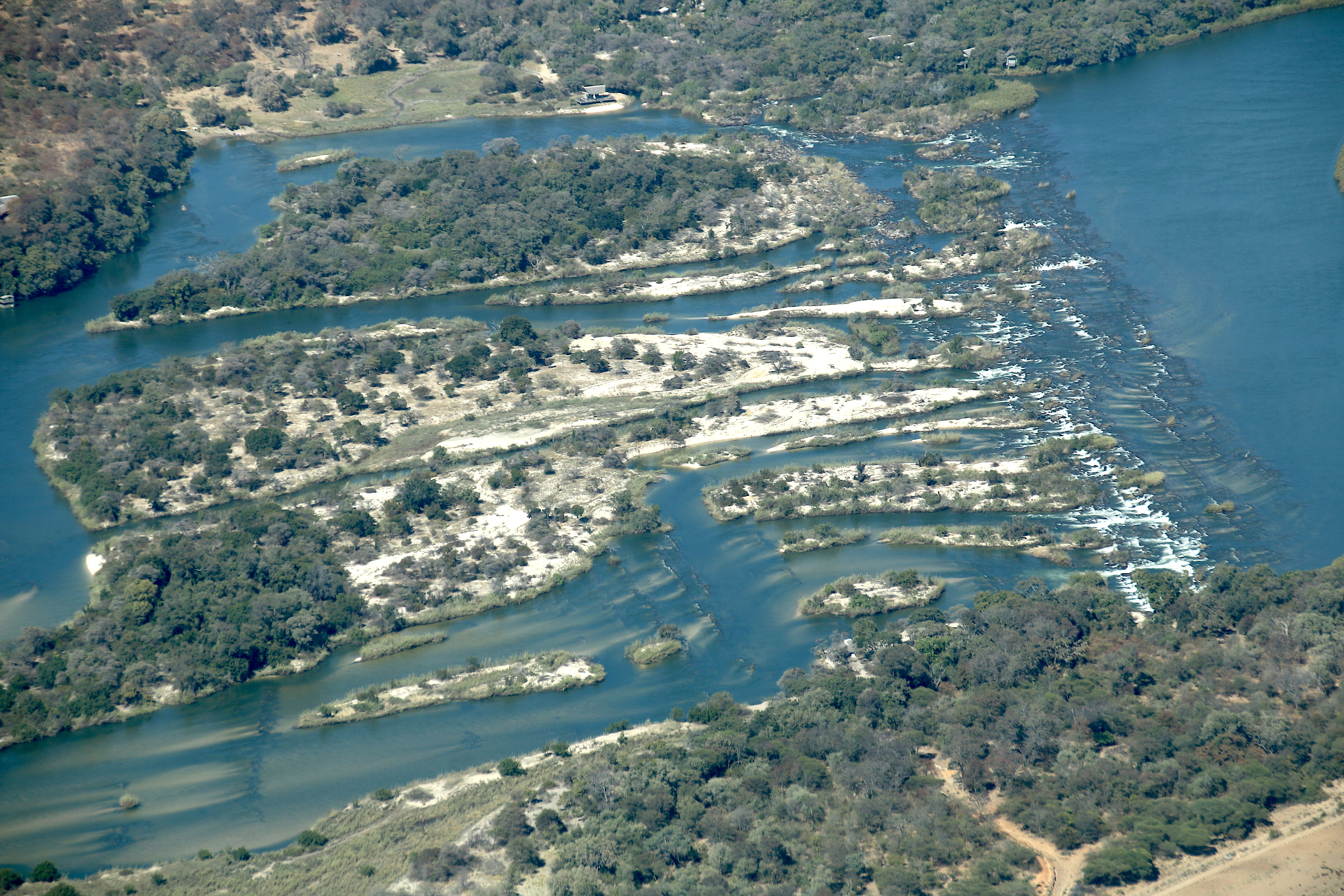 보츠와나에 진입하기 전, 강은 포파 폭포로 알려진 일련의 급류에서 4m 낙하하는데, 건기처럼 강물이 적을 때는 폭포가 보인다.[4]