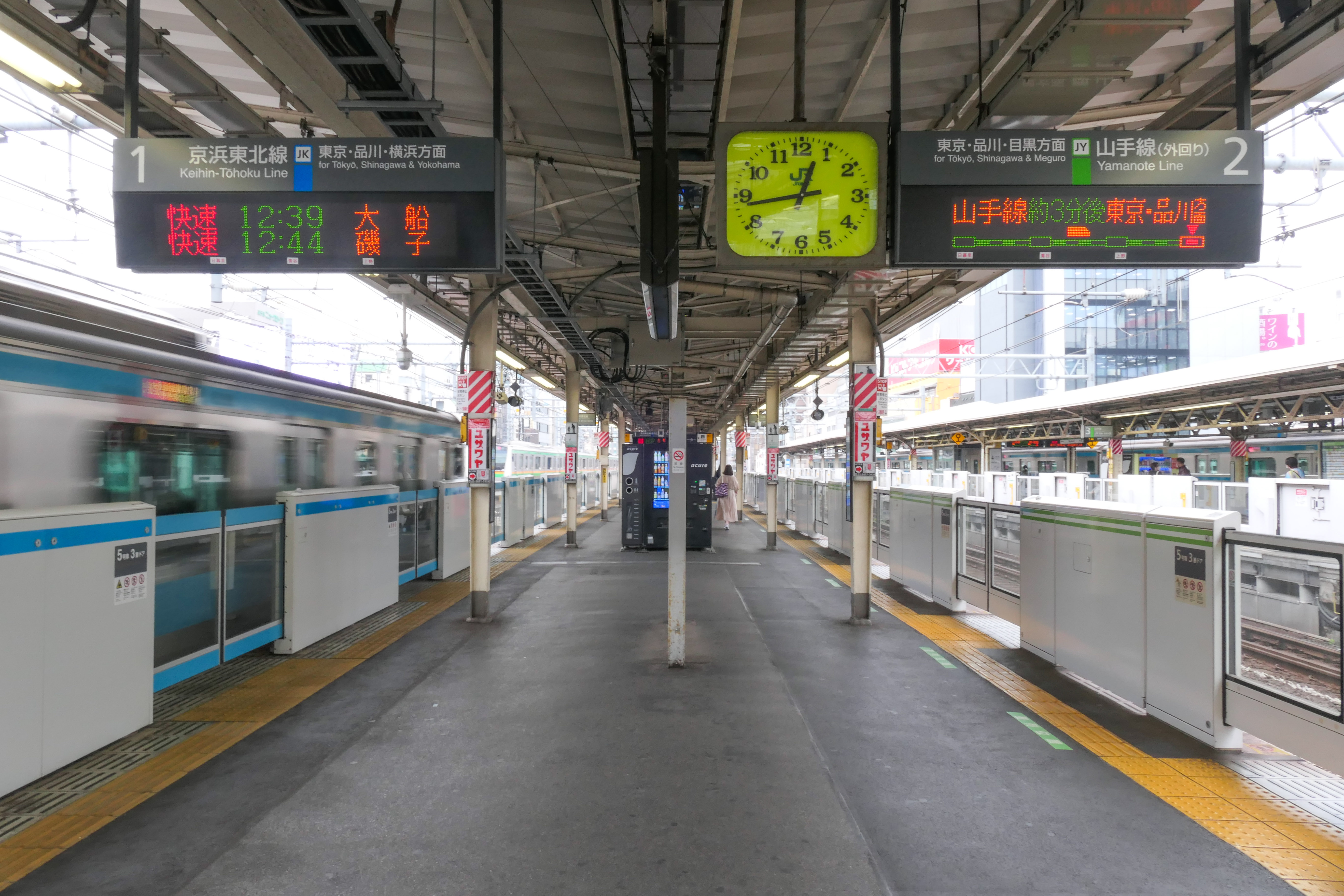 1번선과 4번선은 게이힌 도호쿠 선이 사용하고, 2번선과 3번선은 야마노테 선이 사용한다.[2] 야마노테 선 승강장에는 2014년 3월에 스크린도어가 설치되었고,[3] 게이힌 도호쿠 선 승강장에는 2018년에 스크린도어가 설치되었다.