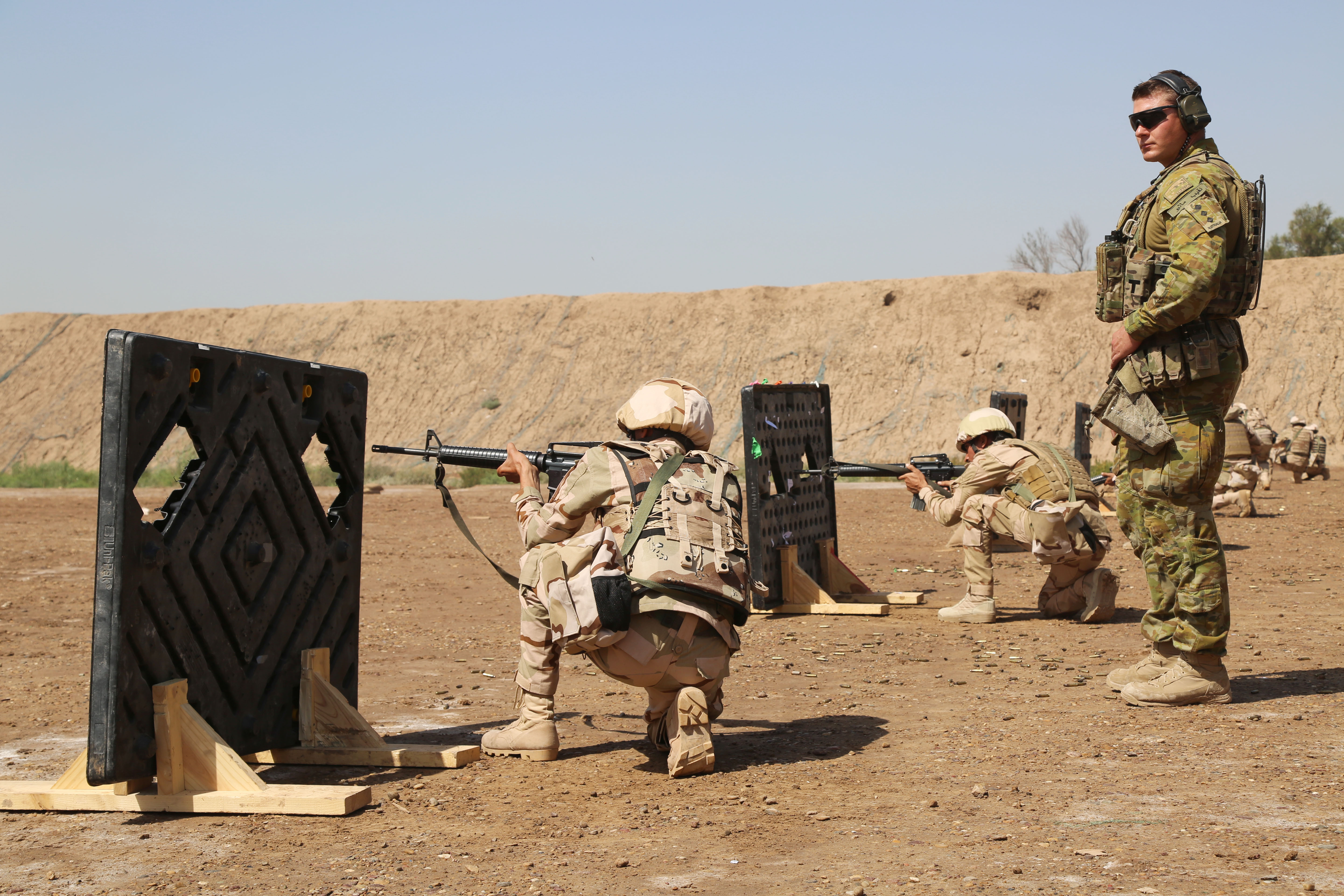 한편, 오스트레일리아 육군의 훈련 부대인 타지 특수임무부대(Task Group Taji)는 2015년 4월 이라크에 파병되어 이라크 보안군 훈련 임무를 수행했다.[127][11] 이 부대는 중동 지역 합동 임무 부대 633(JTF 633) 소속으로, 초기 지휘관 크레이그 오름 소장에 이어 2014년 12월 트레버 존스 준장이 지휘를 맡았다.[12][13]