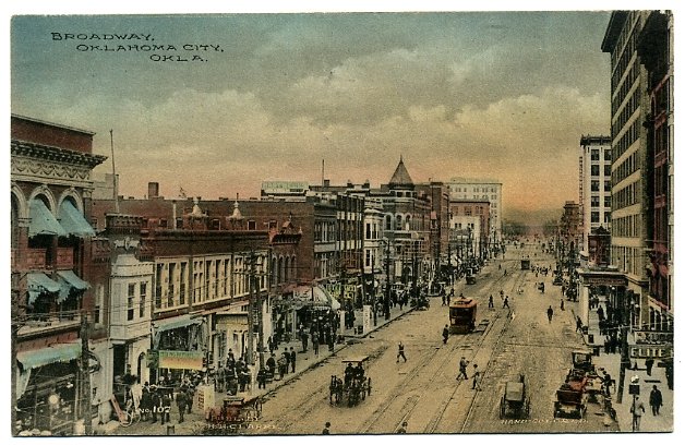 오클라호마시티는 1889년 4월 22일, "미지정지역"으로 알려진 지역이 "토지 러시"라는 사건으로 정착이 허용되면서 건설되었다.[17] 같은 해 4월 26일, 초대 시장인 윌리엄 쿠치가 선출되었다. 약 1만 명의 자유농장 개척자들이 오클라호마 주의 수도가 될 지역에 정착했다. 도시는 빠르게 성장하여 1890년과 1900년 사이에 인구가 두 배로 증가했다.[18] 도시 개발 초기에는 안톤 H. 클라센, 존 윌포드 샤텔, 헨리 오버홀서, 오스카 아메린저, 잭 C. 월턴, 안젤로 C. 스콧, 제임스 W. 메니 등이 지도자로 활동했다.1907년 오클라호마가 미국 연방에 가입했을 때, 오클라호마시티는 준주 수도였던 구스리를 제치고 새로운 주의 인구 및 상업 중심지가 되었다. 얼마 지나지 않아 주도는 구스리에서 오클라호마시티로 이전되었다.[19] 오클라호마시티는 20세기 초 66번 국도의 중요한 정차역이었으며, 바비 트룹이 1946년에 작곡하고 냇 킹 콜이 유명하게 만든 재즈곡 "(Get Your Kicks on) Route 66"에도 언급되었다.
