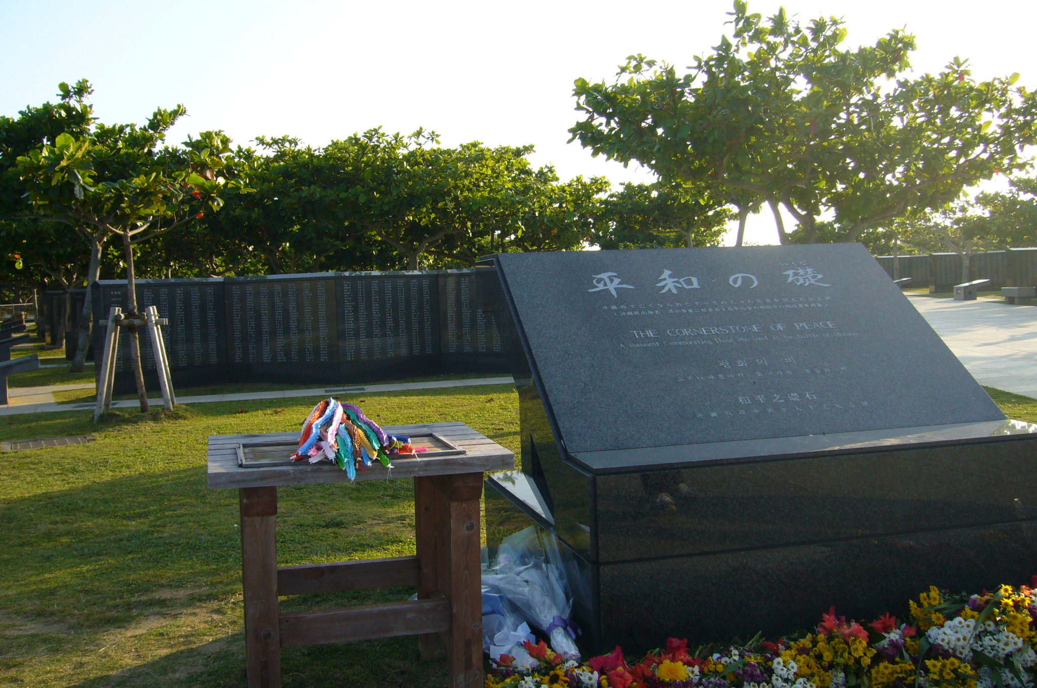 1979년 2월에 건립된 국립 오키나와 전몰자 묘원은 18만여 구의 유골이 안치된 납골·위령 시설이다. 적기와가 얹어진 참배소와 돌을 쌓아 올린 류큐 묘지 형태의 납골당, 그리고 이를 둘러싼 광장으로 구성되어 있다. 근처에는 각 현(縣) 및 각종 단체의 위령비·위령탑이 다수 건립되어 있다.