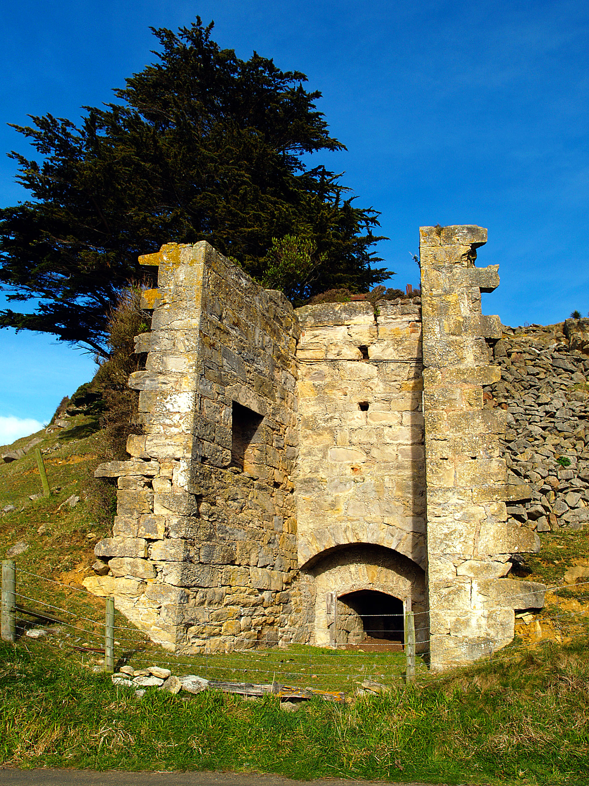 1864년에는 타이아로아 헤드(Taiaroa Head)에 등대가 건설되었고, 죄수 노동력을 동원하여 지역 석재로 방파제를 갖춘 해안 도로 건설이 시작되었다. 개간된 땅에는 정착민들이 '갤러웨이 딕스'(Galloway Dykes) 양식의 건식 석벽을 쌓았는데, 이는 뉴질랜드 내에서는 반도 건너편 언덕 외에는 찾아보기 힘든 독특한 풍경 요소가 되었다. 같은 해 샌디마운트(Sandymount) 근처에는 석회 가마가 건설되었다.
