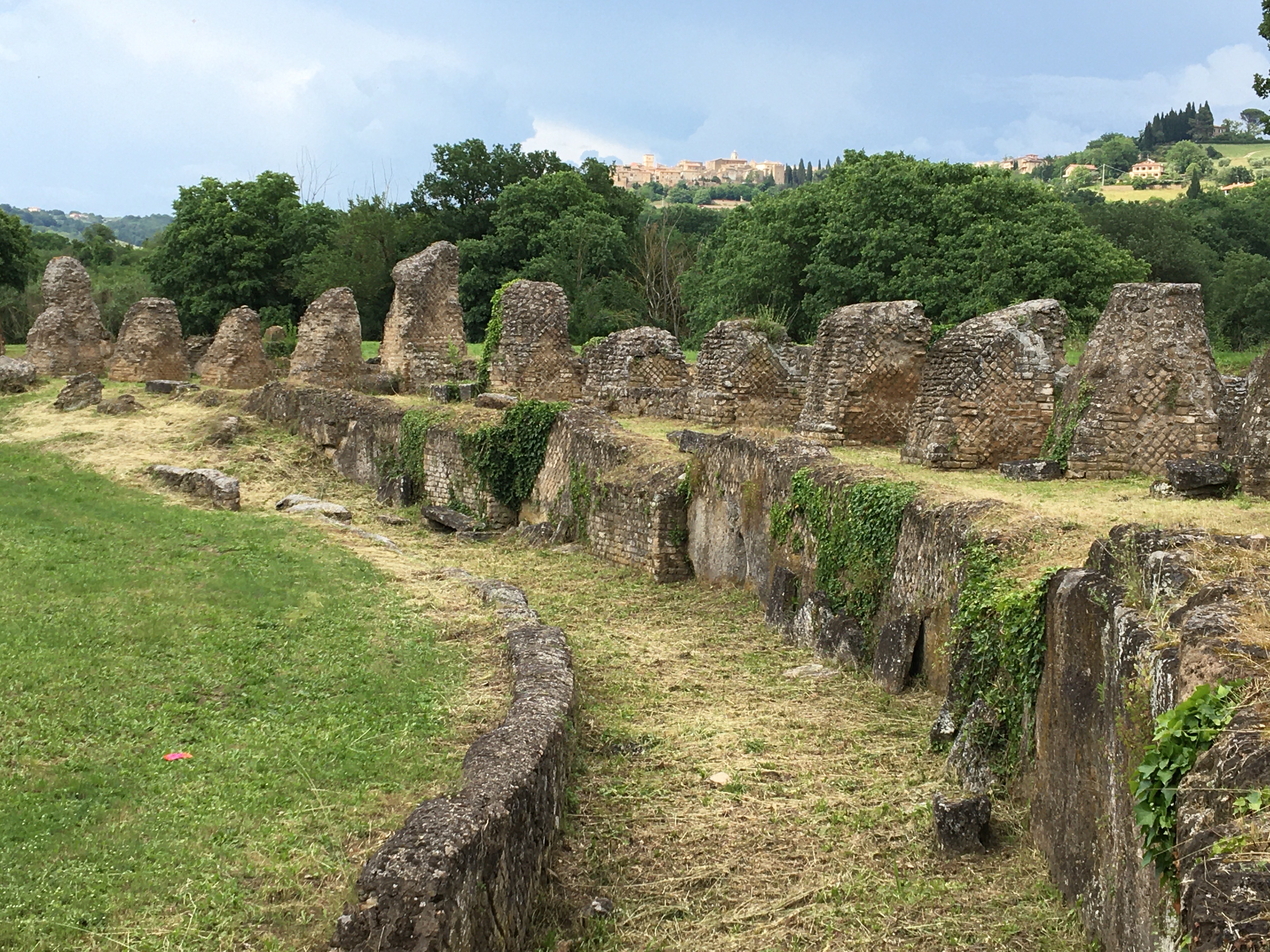 몇몇 기념비적인 무덤들이 특이하게도 도시 안 플라미니아 가도 근처 계곡에 세워져 있다. 그중 하나는 공공 우물과 좌석 옆에 있는 큰 원통(드럼) 형태이며, 아르넨시스 부족의 가이우스의 아들인 루키우스 코미누스 투스쿠스(Lucius Cominius Tuscus)의 소유였다.[11]