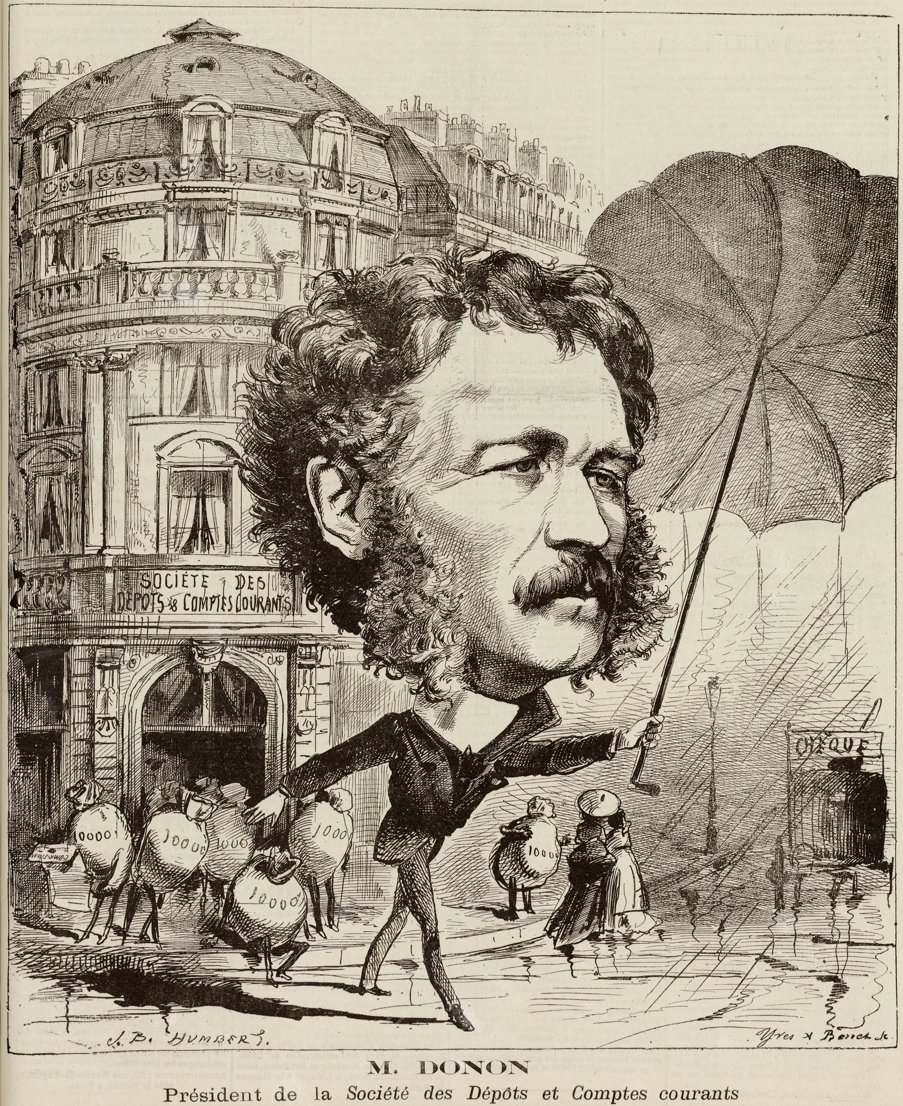 오페라 광장 2번지, 꺄트르-성템브르 거리 모퉁이에 있는 이 건물은 건축가 앙리 블롱델의 설계로 1868년부터 1873년 사이에 건설되었다. 처음에는 예금 및 당좌 계정 회사(Société des Dépôts et Comptes Courants, SDCC)의 본사였으며, 1892년 SDCC가 청산된 후에는 파리 국립 할인 은행(Comptoir national d'escompte de Paris, CNEP)의 파리 주요 지점이 되었는데, 이 은행은 최근 대대적인 구조조정을 거쳤다.