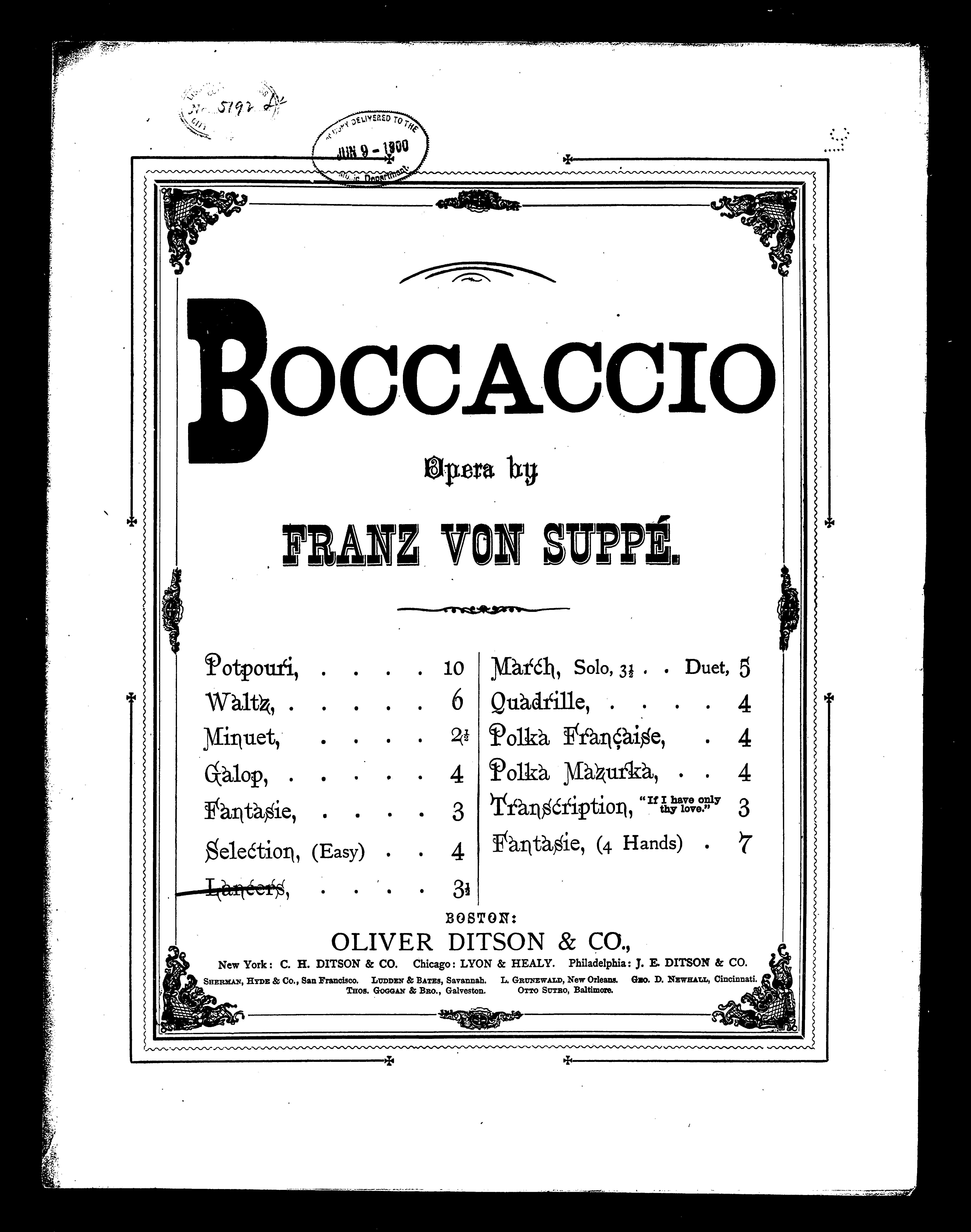 프란츠 폰 쥐페(Franz von Suppé)는 1819년에 태어났으며, 그의 명성은 오펜바흐와 견줄 만하다. 쥐페는 비엔나의 주요 작곡가이자 지휘자였으며, 오페레타 ''가벼운 기병대(Leichte Kavallerie)'' (1866), ''파티니차(Fatinitza)'' (1876), ''보카치오(Boccaccio)'' (1879)로 가장 잘 알려져 있다.[20]