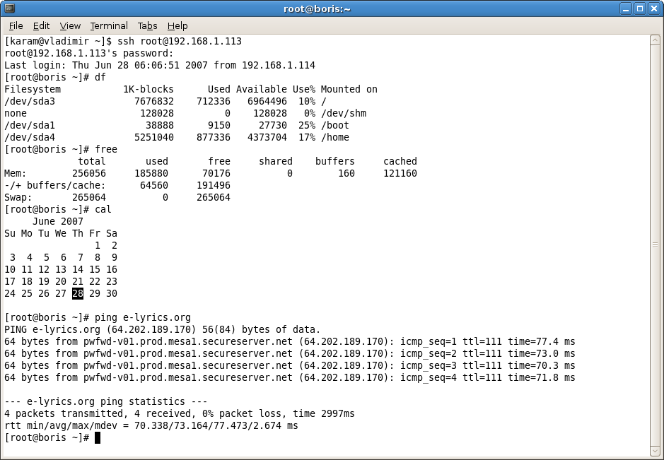 - ssh: 원격 시스템에 대한 셸 접근을 위해 rlogin, rsh 및 telnet를 대체한다.