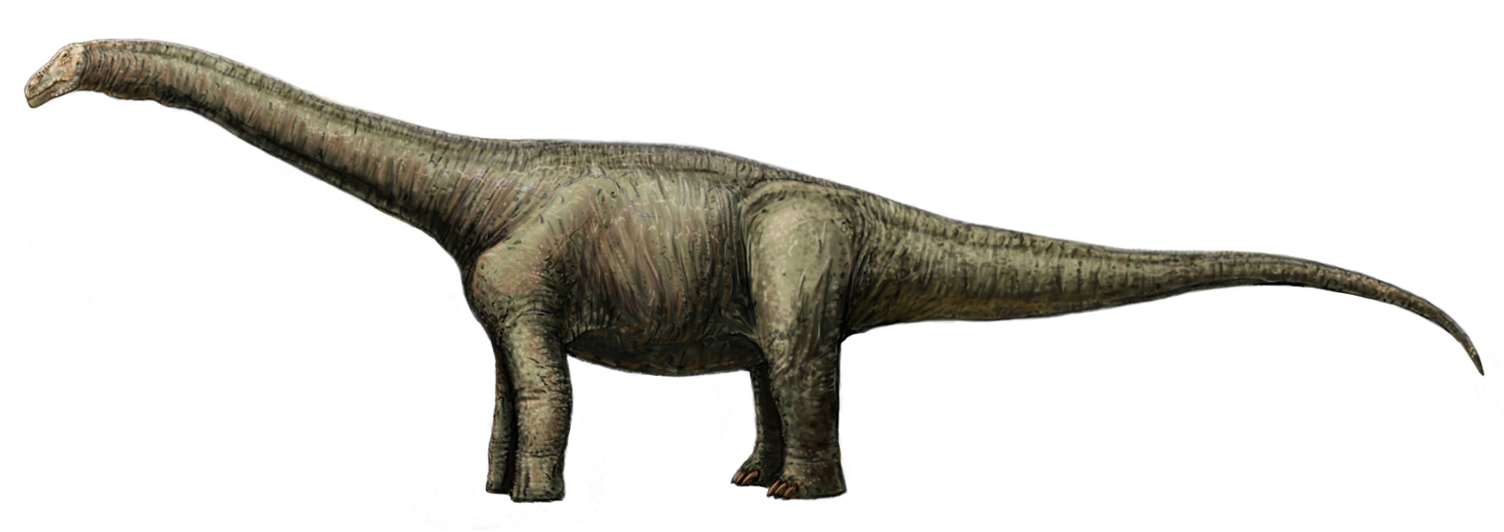 오피스토코엘리카우디아의 손은 수직으로 배치되어 반원을 이루는 5개의 중수골로만 구성되었다. 다른 티타노사우루스처럼 손목뼈가 없었다. 손가락뼈와 발톱도 완전히 없었다. 다른 티타노사우루스에서는 이러한 뼈가 여전히 존재했지만 크기가 매우 흔적 기관으로 감소했다. 발에서는 거골은 다른 티타노사우루스처럼 강하게 감소했고, 종골은 아마도 ''오피스토코엘리카우디아''에서는 완전히 없었을 것이다. 손과 대조적으로, 발은 잘 발달된 발가락과 발톱을 보였다. 발가락뼈 공식은 가장 안쪽 발가락부터 시작하여 발가락뼈의 수를 나타내며, 2-2-2-1-0이다. 티타노사우루스의 발 골격은 드물게 발견되며, ''오피스토코엘리카우디아'' 외에 완전히 보존된 예는 ''에파크토사우루스''와 이름 없는 라 인베르나다 티타노사우루스에서만 알려져 있으며, 이들의 발가락뼈 공식은 각각 2-2-3-2-0과 2-2-2-2-0이다. 이 세 티타노사우루스 중에서 ''오피스토코엘리카우디아''가 가장 파생된 모습을 보였으며 발가락뼈가 가장 적었으며, 이는 티타노사우루스 진화 동안 발가락뼈 개수의 점진적인 감소를 나타낸다. 첫 번째 발가락의 발톱은 다른 용각류처럼 두 번째 발가락의 발톱보다 크지 않았지만, 크기가 거의 같았다.3. 5. 피골(피부 갑옷)