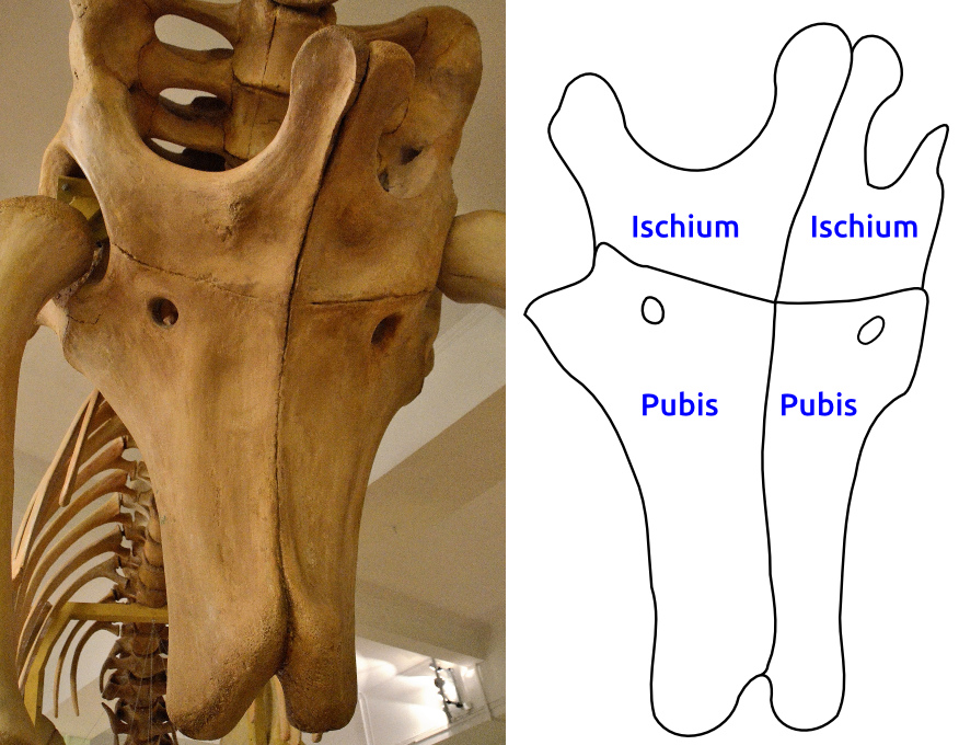 다른 티타노사우루스의 엉덩이처럼, 좌골은 비교적 짧아 치골 길이의 3분의 2에 불과했다. 왼쪽과 오른쪽의 좌골뿐만 아니라 왼쪽과 오른쪽의 치골도 대부분의 길이에서 서로 골화되어, 다른 용각류에서 일반적으로 이 뼈 사이에 존재하는 간격을 닫았다.
