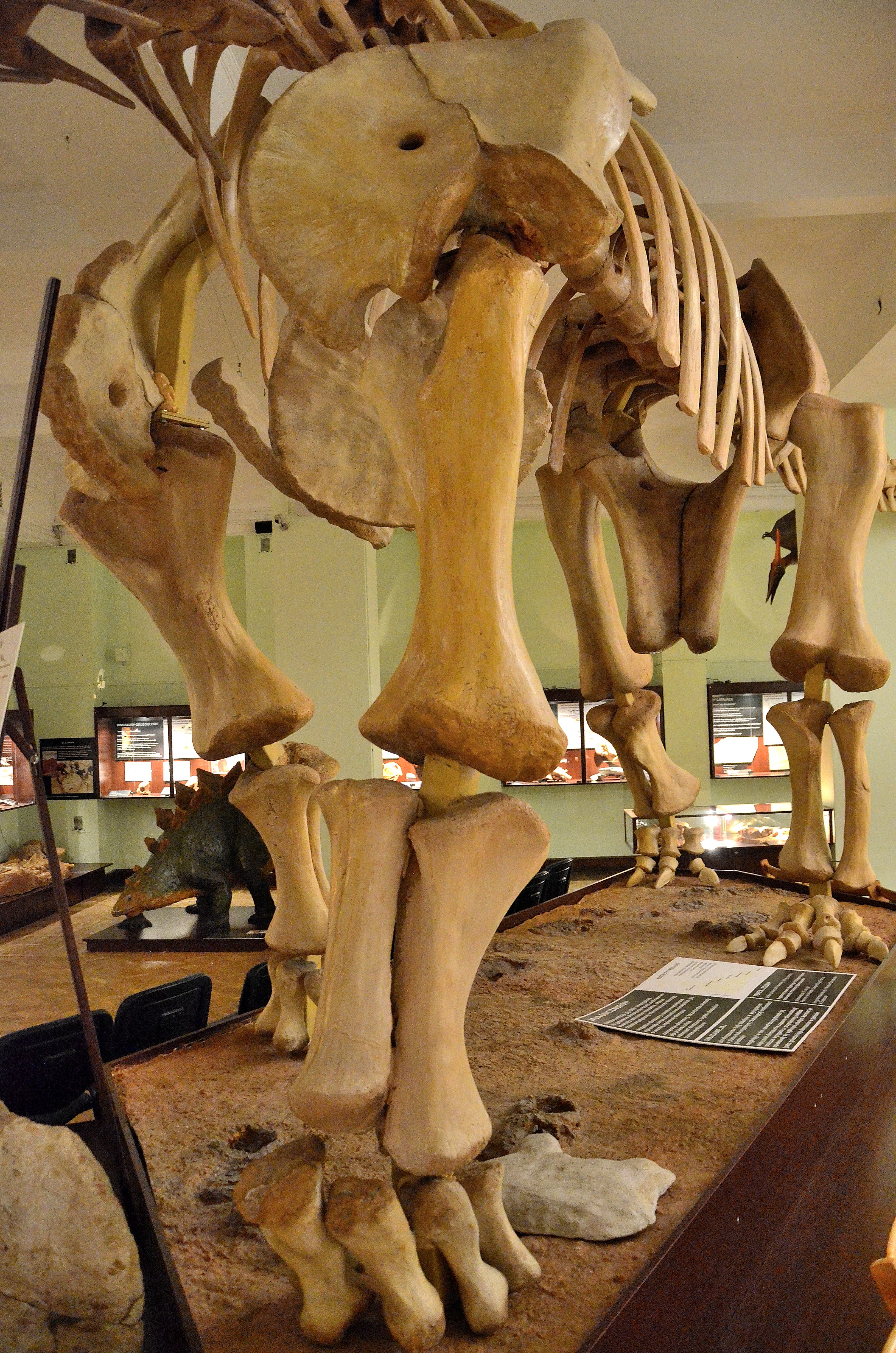 기준 표본은 노령의 개체에 속했으며, 등 위에 누워 있는 상태로 발견되었다는 점에서 특이했다. 대부분의 척추는 연결된 상태로 8개의 등뼈, 6개의 엉치뼈, 34개의 꼬리뼈를 형성했다. 3개의 분리된 척추뼈는 등과 목 사이의 전환 영역에 속할 수 있다. 골격의 나머지 부분은 원래 위치에서 약간 벗어나 있었고, 골반과 허벅지 뼈에는 포식자가 먹은 흔적이 남아 있었다. 머리와 목이 없는 것으로 보아 육식동물이 가져갔을 수 있다. 유해의 완전성은 개체가 발견 장소 근처에서 사망했음을 나타내며, 홍수로 인해 짧은 거리를 이동한 후 퇴적물에 덮였을 가능성이 있다.