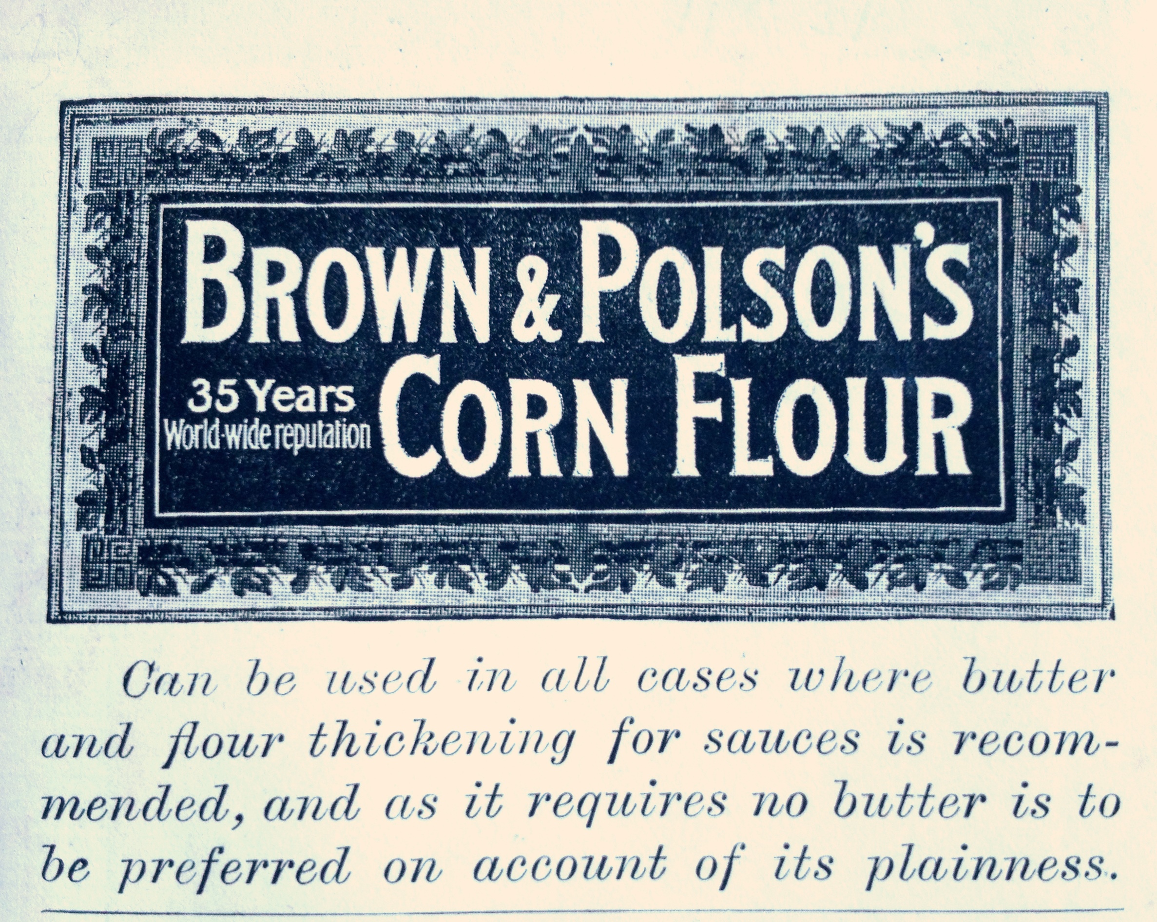 1854년 스코틀랜드 페이즐리의 John Polson은 옥수수에서 순수한 요리용 녹말을 생산하는 방법을 특허받았다.[7][8] 이 녹말은 "특허 옥수수 가루"로 판매되었다. Brown & Polson은 페이즐리 숄 산업을 위해 세탁물 풀을 생산해 온 무명 제조업체였으며, 이후 영국 최대의 녹말 생산업체가 되었다.