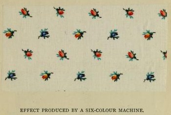 토마스 벨은 1783년에 구리 롤러를 사용하는 인쇄 기술을 특허냈다. 1785년, 리브시, 하그리브스 앤 컴퍼니는 이 기술을 사용한 첫 번째 기계를 랭커셔 월턴-르-데일에서 가동했다. 1750년 랭커셔의 인쇄된 천 생산량은 30m 크기의 50,000개로 추정되었고, 1850년에는 20,000,000개였다.[9] 조각된 롤러를 사용하는 옥양목 인쇄의 상업적 방법은 1821년 영국 더비셔 뉴 밀스에서 발명되었다. 포츠, 올리버 앤 포츠의 존 포츠는 구리 조각 마스터를 사용하여 잉크를 전사하는 롤러를 제작했다.[11] 1888년 이후, 블록 인쇄는 소량 생산 전문 작업에만 사용되었다. 1880년 이후, 과잉 생산으로 인해 인쇄 이윤이 감소했고, 회사들은 기업 집단을 형성하기 시작했다. 첫 번째는 1897년 세 개의 스코틀랜드 회사가 설립한 유나이티드 터키 레드 Co. Ltd였고, 두 번째는 1899년 더 큰 옥양목 인쇄 협회로 46개의 인쇄 업체와 13개의 상인이 결합하여 영국 인쇄 능력의 85%를 차지했다.[12] 1901년에 옥양목은 인쇄 무역의 48%를 차지했다. 1916년에 그들과 다른 인쇄업자들은 업종별 최소 가격을 설정하는 무역 협회를 형성하고 가입했다.