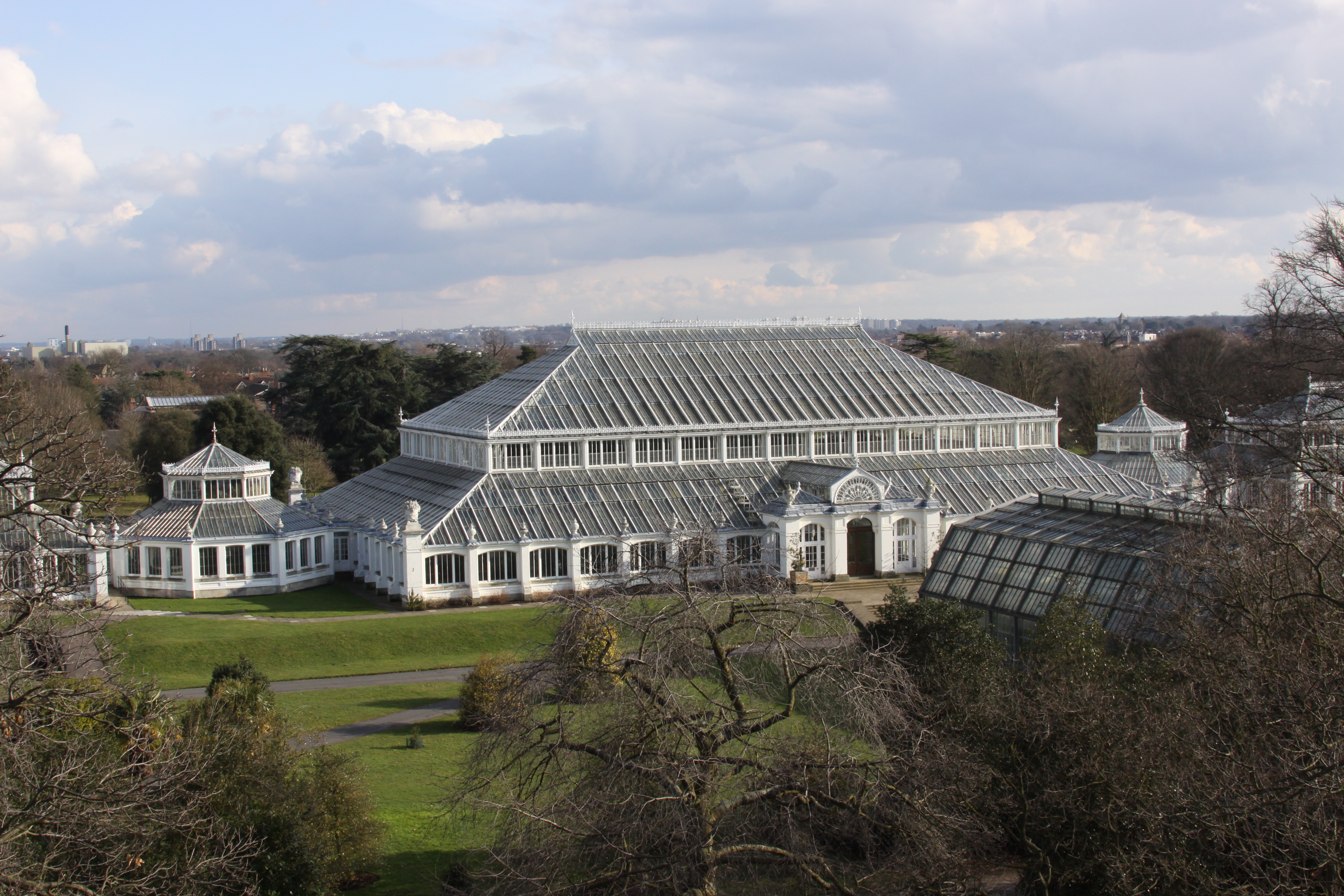 영국 런던에 위치한 큐 왕립식물원은 18세기 정원에서 시작하여 국립 식물원으로 확장되어 120 헥타르 규모의 다양한 식물 컬렉션, 역사적 건축물, 온실을 보유한 세계적인 식물원으로, 2003년 유네스코 세계 유산으로 지정되었으며 식물 연구 및 보존에 중요한 역할을 한다. - 온실 - 트로펜하우스 프루티겐