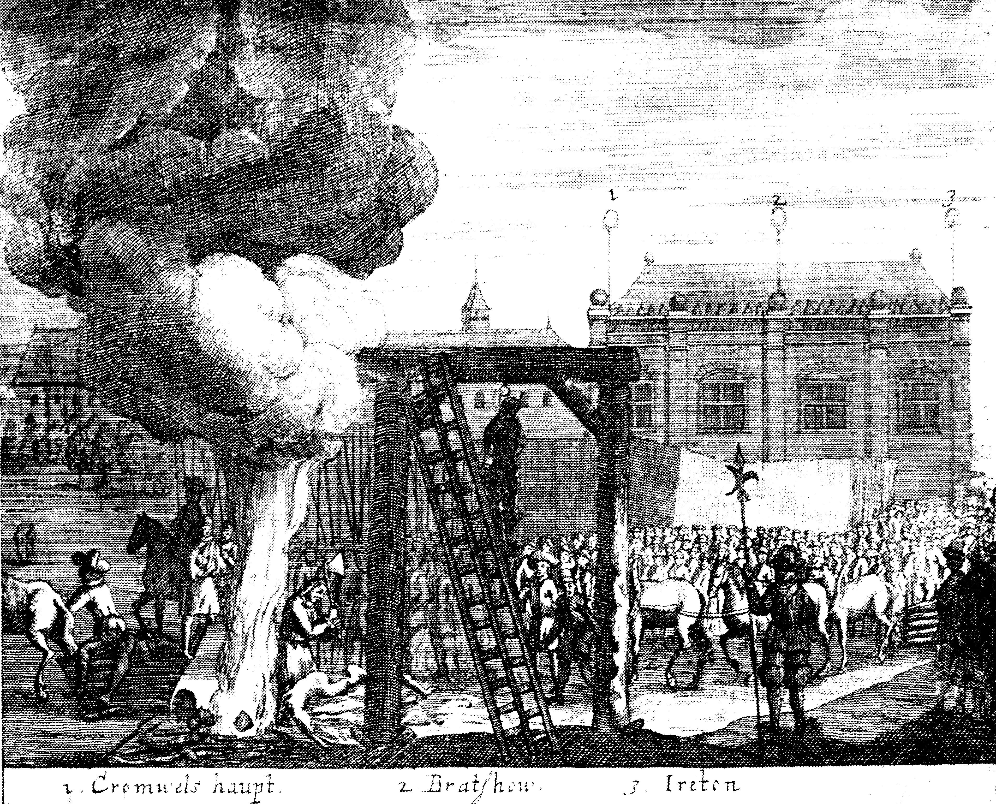 찰스 1세에 대한 사형 결정문에는 59명이 서명했으며, 크롬웰은 3번째로 이름을 올렸다.[229] 국왕 처형은 전례가 없는 일은 아니었지만, 왕권신수설과 시역이라는 비난을 받았다.[230] 서명자들은 머뭇거렸지만, 크롬웰은 서명 후 "이제 처형이 진행될 수 있다"고 말했다.[231] 페어팩스는 서명을 거부했다.[232][233] 찰스 1세는 1649년 1월 30일 처형되었다.