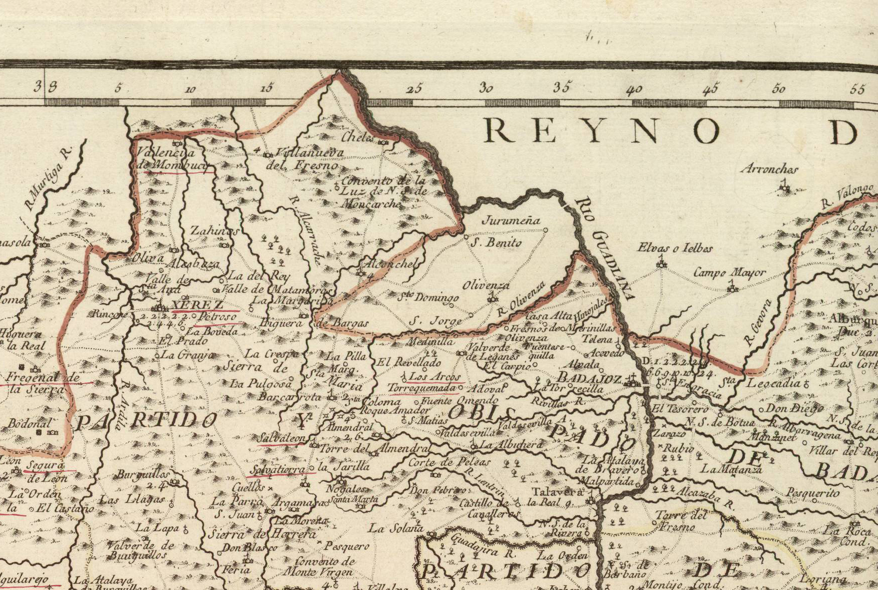 1864년 | 9월 29일: 포르투갈-스페인 리스본 조약 체결. 극북 미뉴 강 어귀부터 올리벤사 북쪽 카야 강과 과디아나 강 합류점까지 국경 표시. 올리벤사 문제로 국경 획정 중단. |