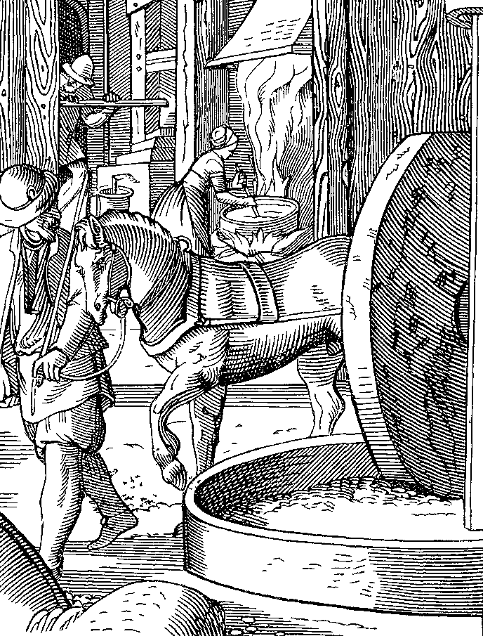 로마 제국 시대에는 올리브 오일 무역이 활발했으며, 플리니우스는 1세기경 이탈리아가 지중해 최고 올리브 오일을 생산했다고 기록했다. 로마인들은 올리브 압착기와 ''trapetum''(왼쪽 그림)과 같은 정교한 생산 기술을 사용했으며,[9] 1795년 유압 압착 시스템 개발로 생산성이 크게 향상되었다.[9]