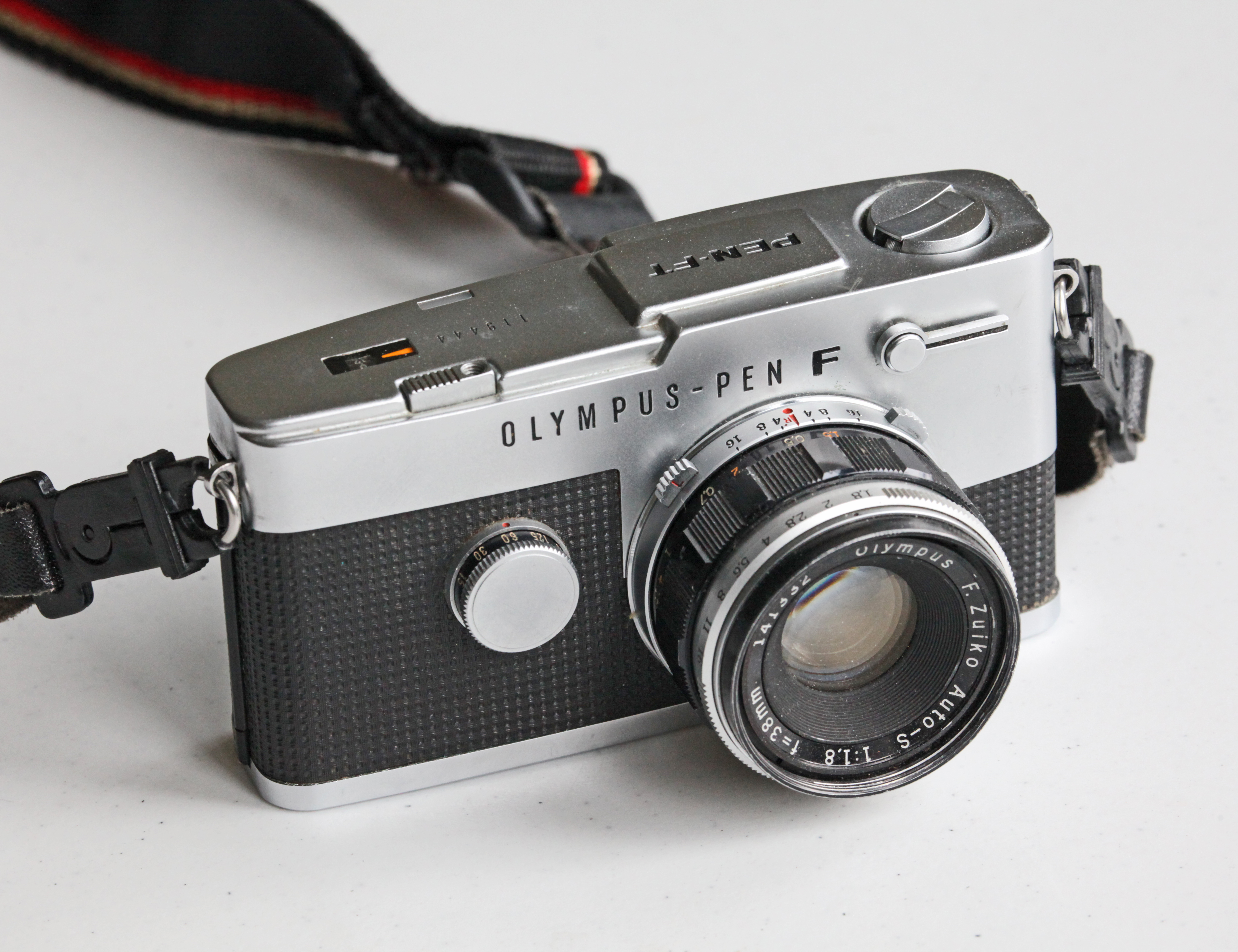 올림푸스 카메라 역사에서 중요한 혁신은 1959년에 출시된 펜(PEN) 시리즈였다.[7] 이 카메라는 하프 프레임 형식을 채택하여, 표준 36매짜리 35mm 필름 카세트 하나로 18×24mm 크기의 사진을 72장까지 찍을 수 있었다.[8] 덕분에 펜 시리즈는 당시 기준으로 매우 작고 휴대하기 편리하여 큰 인기를 끌었다.