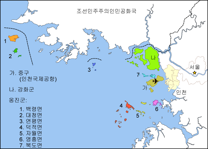 1995년 3월 1일, 경기도 옹진군이 인천광역시에 편입되어 '''인천광역시 옹진군'''이 되었다.[19]