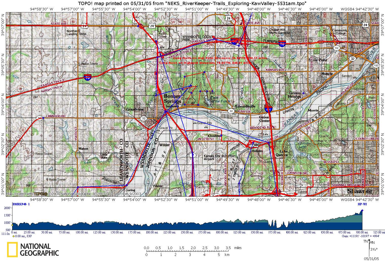 수역와이언도트군은 미주리 강 분지의 일부인 카와 강의 자연적인 하천 및 시내 유역에 의해 배수되며, 풍부한 강수량을 보인다.[9][10] 터키 크릭은 존슨 카운티와 와이언도트 카운티를 가로지르는 하천으로, 이 지역에 재앙적인 홍수를 일으켜 미국 육군 공병대가 복잡한 홍수 조절 배치와 로즈데일, KCK의 주요 배수를 포함한 진행 중인 제안을 개발했다.[11][12] 군역에는 미주리강 수계에 속하는 캔자스 강이 흐르며, 캔자스 주의 북동부에 위치한다.