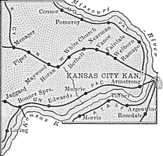 와이언도트군은 1859년에 조직되었다.[6] 텐스콰타와(테쿰세의 형제)인 "예언자"는 1811년 티피카누 전투에서 싸웠다. 그는 1975년 국립 사적지에 등재된 쇼니 아메리카 원주민 역사 유적지인 화이트페더 스프링 (3818 루비 애비뉴 캔자스시티)에 묻혔다. 캔자스시티 제련 및 정련 회사는 1880년대에 250명 이상을 고용했다. 광석과 기본 잉곳은 산악 채광 지역에서 수입되어 분쇄, 분리 및 정제되었다.