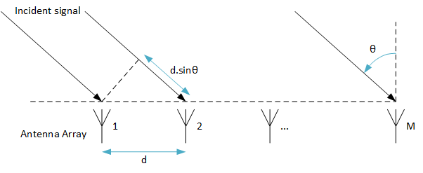 일반적으로 AoA 계산에는 MUSIC 알고리즘이 사용된다. M개의 안테나가 d 거리만큼 동일하게 떨어져 있는 안테나 배열이 있고, L개의 서로 다른 경로를 통해 신호가 도달한다고 가정해 보자. 신호가 배열의 첫 번째 안테나에서 다음 안테나로 도달하기 위해서는 d \sin\theta 만큼의 추가 거리를 이동해야 한다.[14]