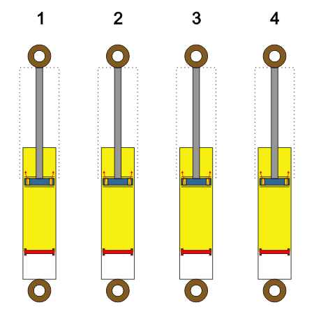 또한, 밸브는 일반적으로 한쪽 방향으로만 작동하도록 설계되는데, 피스톤이 반대 방향으로 움직여 밸브가 포트를 완전히 막는 경우(예: 복통식 쇼크 업소버가 압축될 때 피스톤 밸브가 닫히는 경우)에는 오일이 통과할 수 있는 경로는 오리피스뿐이게 된다.