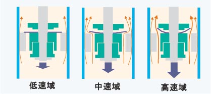 피스톤 밸브 및 베이스 밸브에는 오일 경로를 제어하는 주요 요소로 '오리피스', '밸브', '포트'라고 불리는 세 가지 기구가 있다. 이 요소들은 피스톤의 이동 속도에 따라 개별적으로 또는 함께 작동하여, 해당 속도에 맞는 최적의 감쇠력을 생성하도록 오일 경로의 크기를 조절한다.