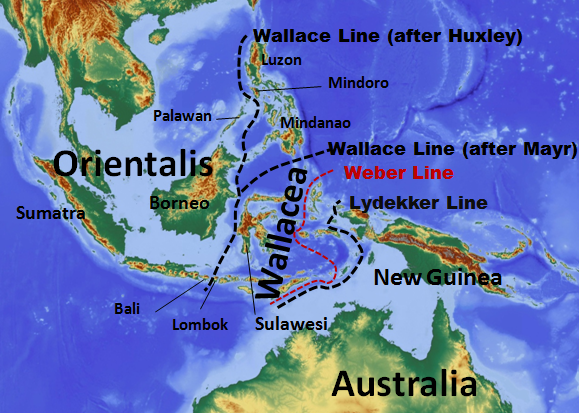 왈레이시아의 동쪽 경계는 리데커선이라고 부르는 동물지리학적 경계선이다.[22][23]