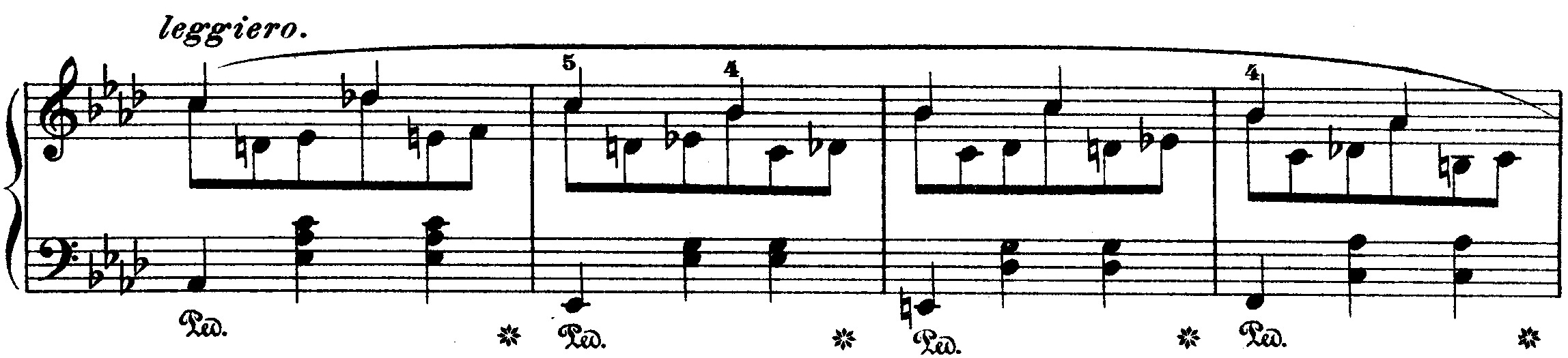 많은 기교적인 구절과 매혹적인 코다를 가지고 있어 인기가 높으며, 연주하기는 어려운 곡으로 여겨진다.[6][7][8] 코다에서는 아첼레란도로 점차 템포를 올리며 양손 유니즌으로 화려하게 마무리된다.