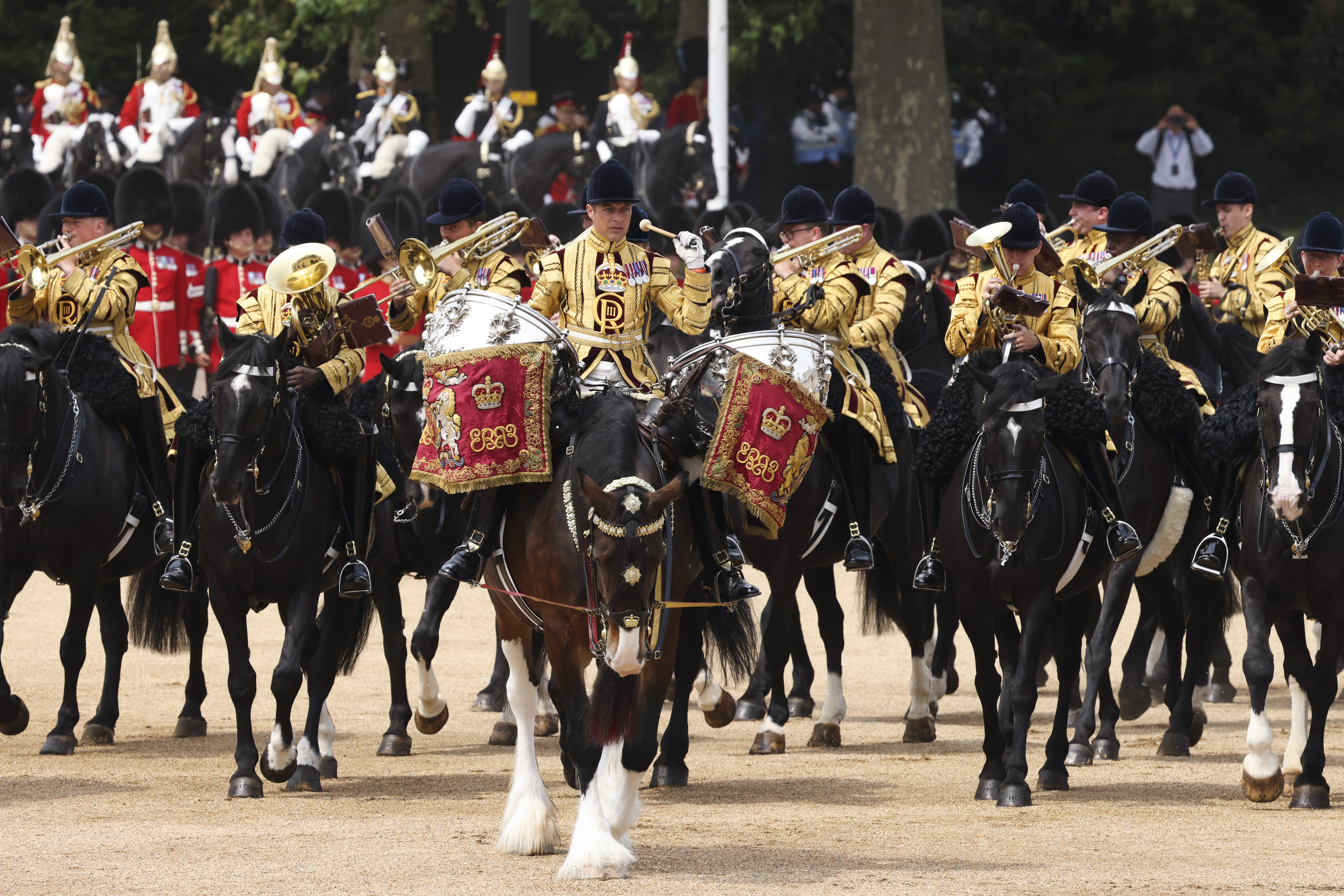 2023년 국왕 생일 퍼레이드에서 연주하는 근위 기병대 기마 밴드