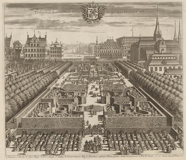 1530년에는 구스타브 1세의 개인 정원으로 사용되었다. 이 실용적인 정원은 점차 울타리가 쳐진 왕실 바로크 양식의 쾌락 정원으로 바뀌었고, 이에 따라 17세기 동안 "왕의 정원"[7]으로 불렸다. 정원은 분수를 중심으로 대칭을 이루었다.