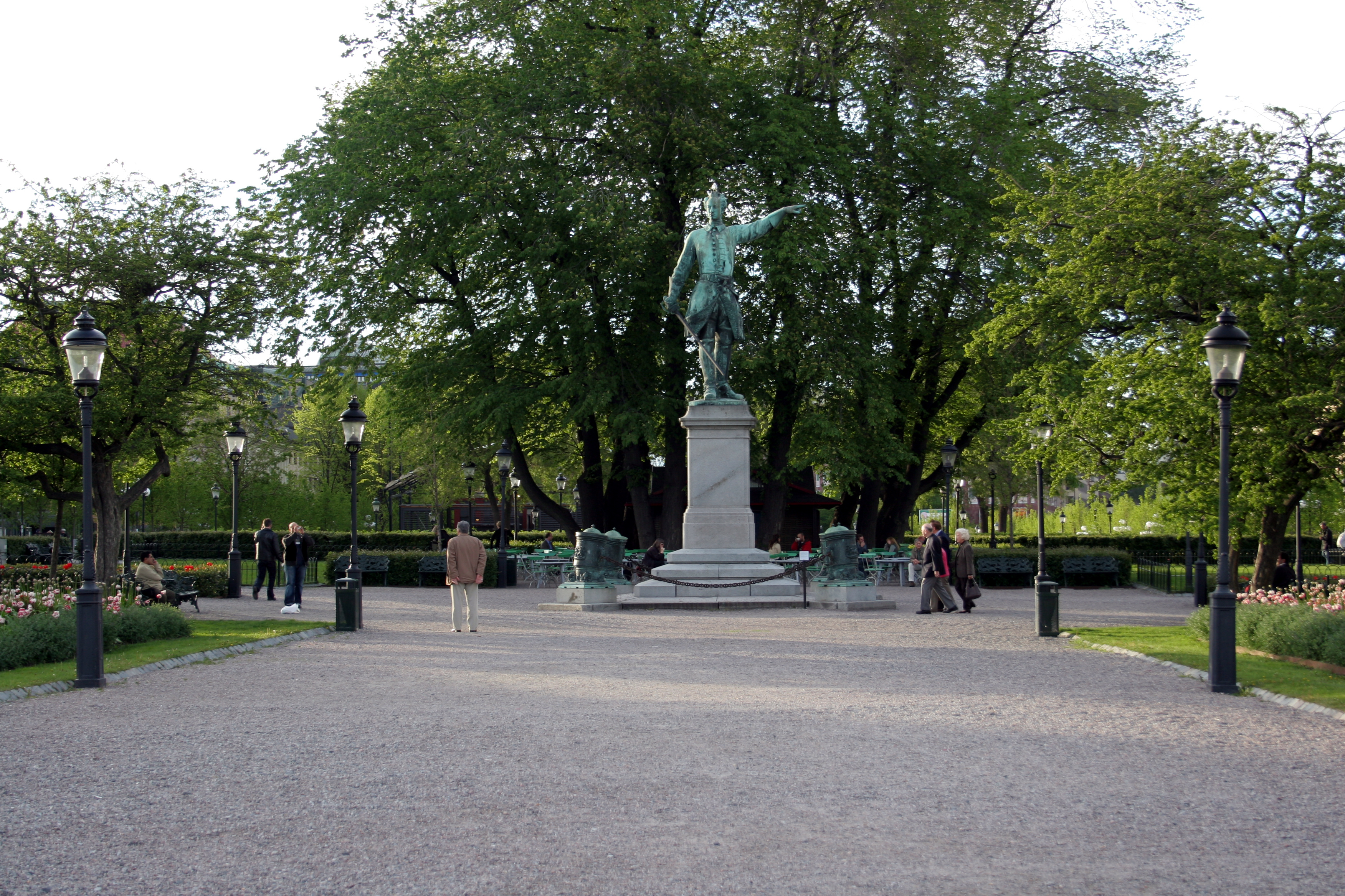 공원의 중심에는 1809년부터 1818년까지 스웨덴 국왕이었던 칼 13세의 동상이 자리 잡고 있다. 이 동상은 그의 후계자인 칼 14세 요한의 의뢰로 제작되었다. 신고전주의 양식으로 구스타프 괼테 (1779–1838)가 디자인했으며 1821년에 세워졌다. 동상 주변에는 벵트 에를란 포겔베르그 (1786–1854)가 조각한 네 마리의 사자가 호위하듯 배치되어 있는데, 이 사자들은 1824년에 추가되었다. 각 사자는 노르웨이와 스웨덴 문장이 새겨진 공을 들고 있으며, 이는 칼 13세가 시작한 스웨덴-노르웨이 연합을 상징한다. 또한, 동상에서 국왕의 오른팔 아래에 있는 닻은 1788-1790년 러시아-스웨덴 전쟁 당시 그가 거둔 해상에서의 승리를 기념한다.[13]