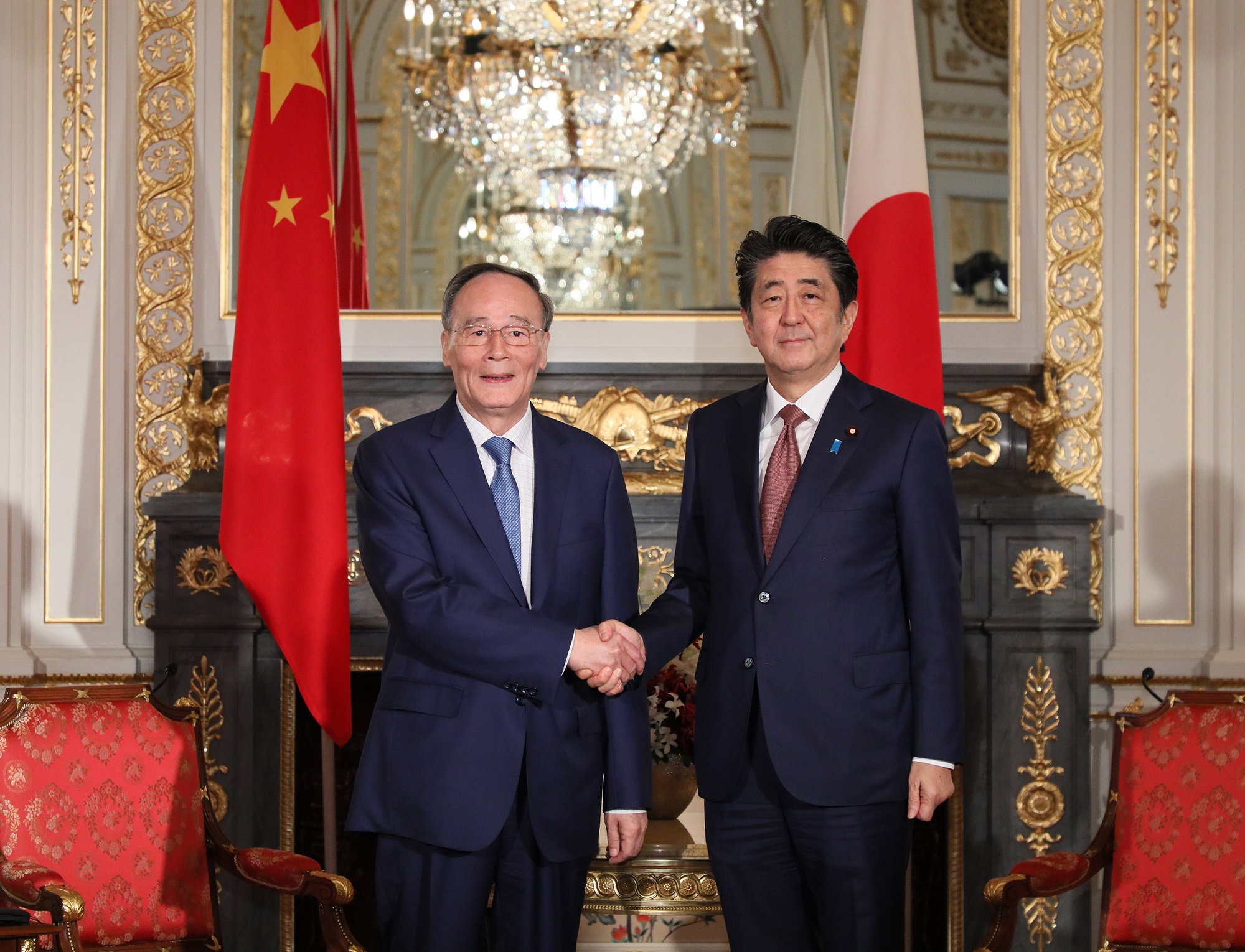 安倍晋三内閣総理大臣と王岐山中国国家副主席との立ち話