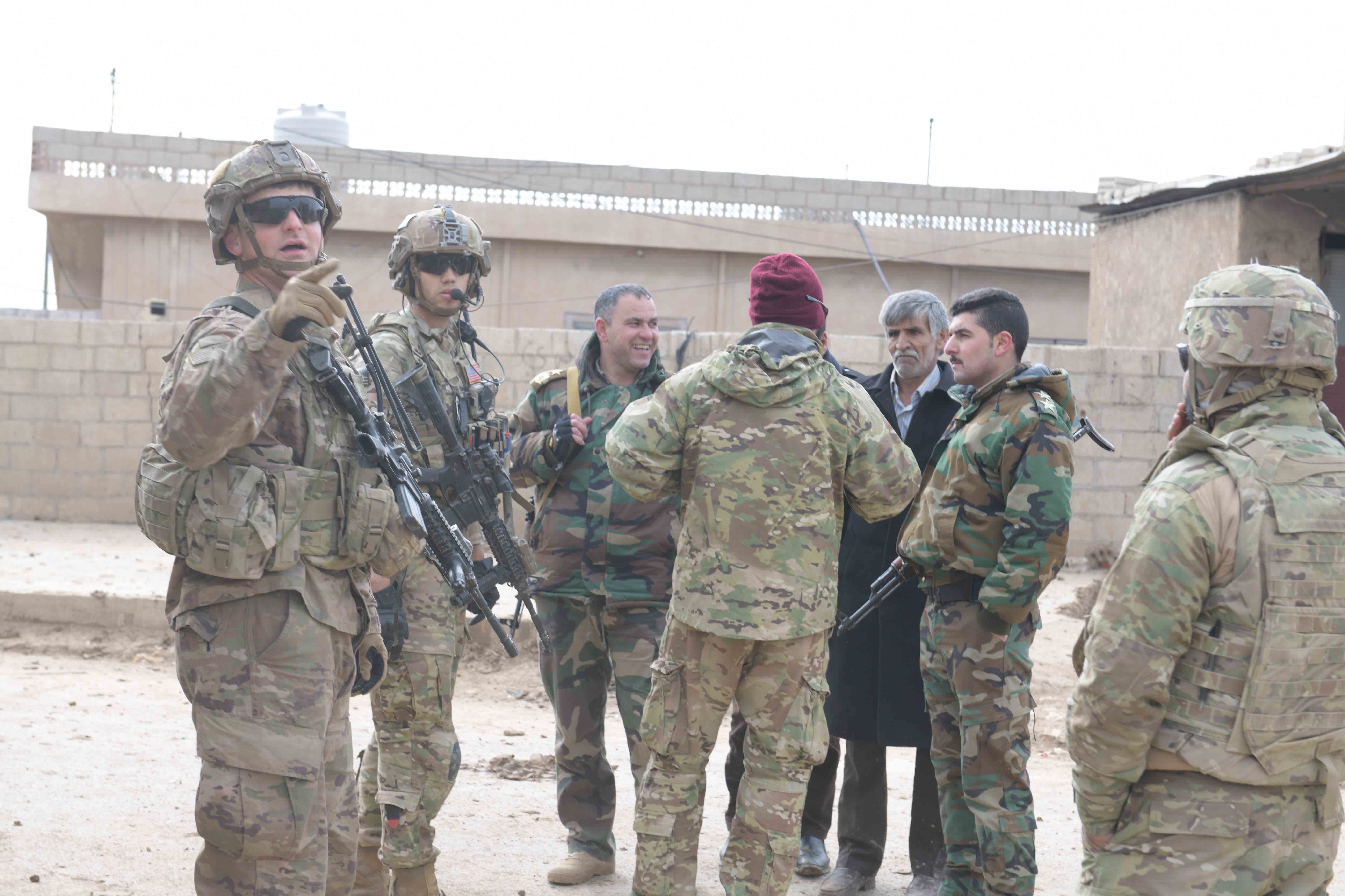 2017년 11월 말, 미국 정부는 쿠르드족이 주도하는 SDF를 지원하기 위해 시리아 북부에 배치된 미군을 이용하여 제네바 회담에서 아사드 대통령에게 양보를 강요할 의도가 있음을 알렸다.[230] 2018년 1월 중순, 렉스 틸러슨은 트럼프 행정부가 이란의 영향력에 대응하고 시리아 대통령 바샤르 알 아사드를 축출하기 위해 시리아에 무기한 군사 주둔을 유지할 것이라고 말했다.[231][232] 그러나 2018년 4월, 아델 알-주베이르 사우디 외무장관은 트럼프 행정부의 철수 의향에 따라 ISIL과의 싸움을 지원하기 위해 시리아에 주둔하고 있는 약 2,000명의 미군을 대체할 병력을 찾는 문제에 대해 미국과 논의 중이라고 말했다.[233]