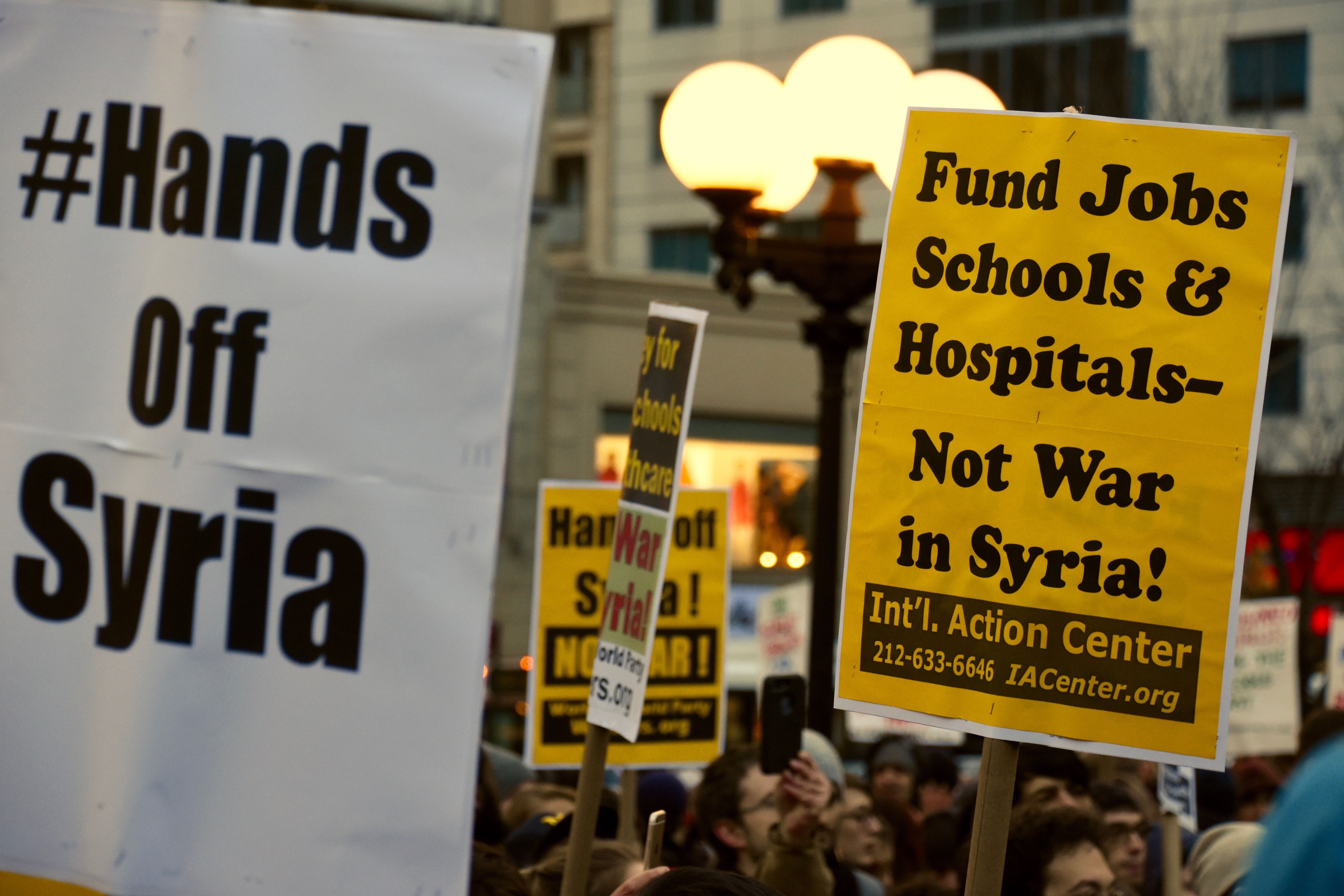 미국은 시리아 내전 초기부터 반군을 지원해왔다. 이러한 지원은 바샤르 알 아사드 정권의 인권 유린과 민주주의 열망에 대한 대응이었다.버락 오바마 행정부는 초기에는 비살상 군사 원조를 제공했지만, 2013년 구타 화학 공격 이후 군사 개입을 고려하기도 했다. 그러나 오바마 대통령은 이전에 "레드 라인"으로 설정한 화학 무기 사용에도 불구하고 군사 행동을 주저했다.[129] 이후 프랑스와 협력하여 시리아 반군에 대한 무기 지원을 시작했다.[135]