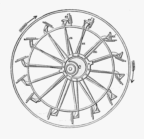 항력에 의한 회전 장치는 단순한 구조에서는 회전축에 수직인 힘을 얻을 수 없다. 수직축 풍차 등에서는 항력의 불균형을 만들기 위해 고안되었지만, 외륜은 단순히 반을 수면 위에 내놓음으로써 항력 불균형을 이루어 회전축에 수직인 한 방향의 항력만을 이용할 수 있다.