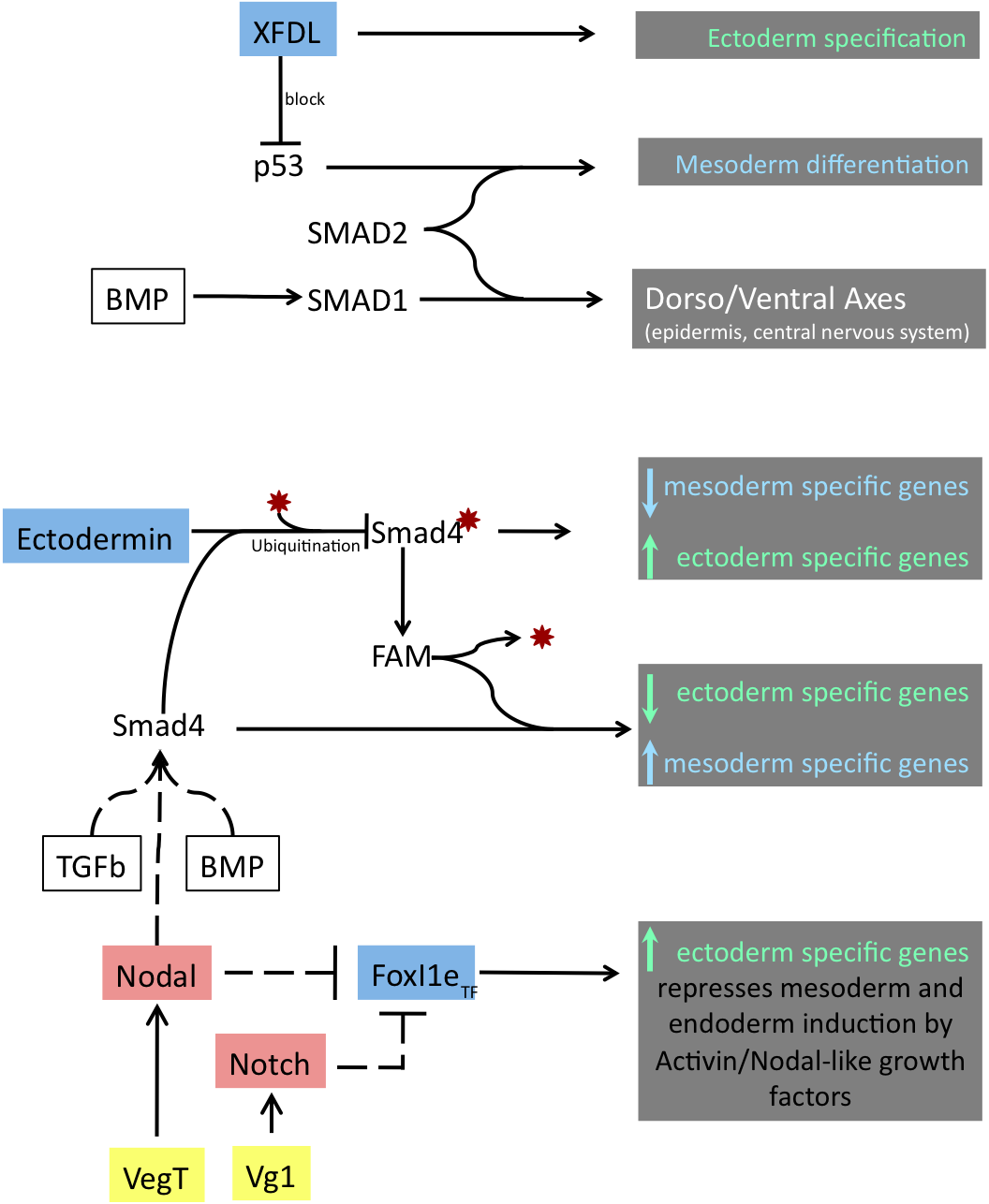 신경계, 치아, 털, 그리고 많은 외분비샘과 같이 외배엽에서 유래하는 모든 기관들은 상피조직과 간엽조직이라는 두 개의 인접한 조직층에서 기원한다.[8] 외배엽의 기관 형성은 FGF, TGFβ, Wnt, 그리고 헤지호그 계열의 조절인자와 같은 여러 신호에 의해 매개된다. 외배엽 기관이 형성되는 특정 시기와 방식은 상피세포의 함입에 따라 달라진다.[9] FGF-9는 치아 원기 발달 개시 동안 중요한 인자이다. 상피에서만 발현되고 간엽에서는 발현되지 않는 FGF-9의 작용에 의해 상피세포의 함입 속도가 크게 증가한다. FGF-10은 더 큰 치아 원기를 만들기 위해 상피세포 증식을 촉진하는 데 도움이 된다. 포유류의 치아는 간엽에서 유래한 외배엽, 즉 구강 외배엽과 신경능선에서 발생한다. 끊임없이 자라는 치아의 줄기세포 상피 성분은 성상층과 표면 외배엽의 기저 상층이라는 조직층에서 형성된다.[9]
