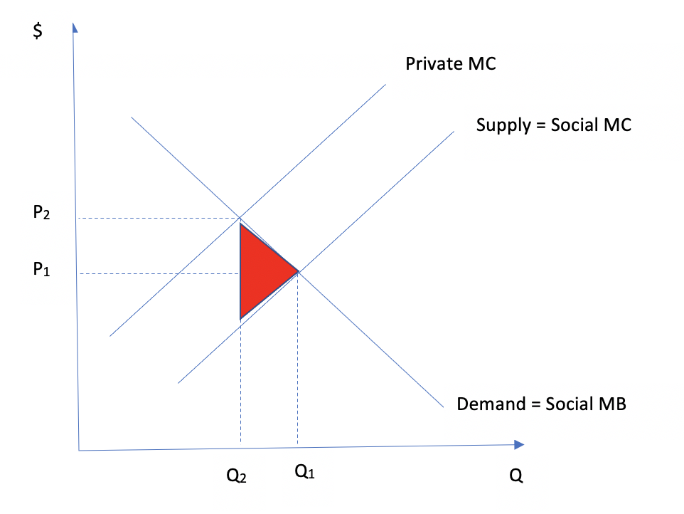 과다 생산 | 부정적 외부성이 있는 재화는 사회적으로 필요한 양보다 많이 생산 |
