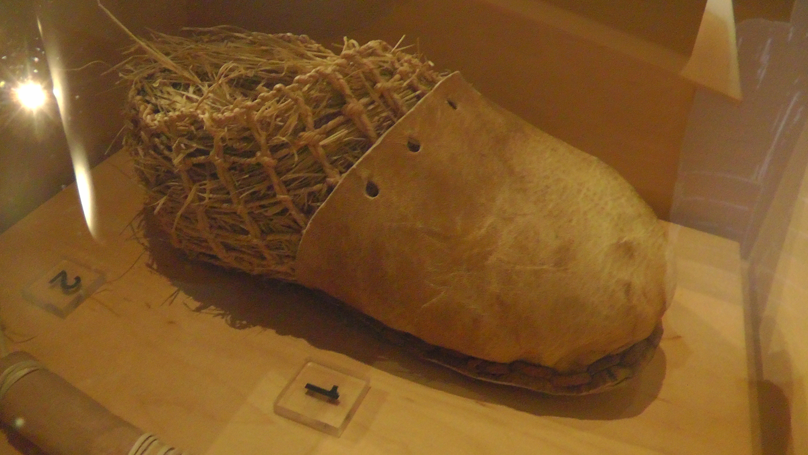 신발 | 신발 | 밑창: 곰가죽 덮개/윗부분: 사슴가죽 끈: 쇠가죽 그물망: 나무껍질 안감: 풀 | 방수, 눈길 걷기 용이 [163][41][168][47] |