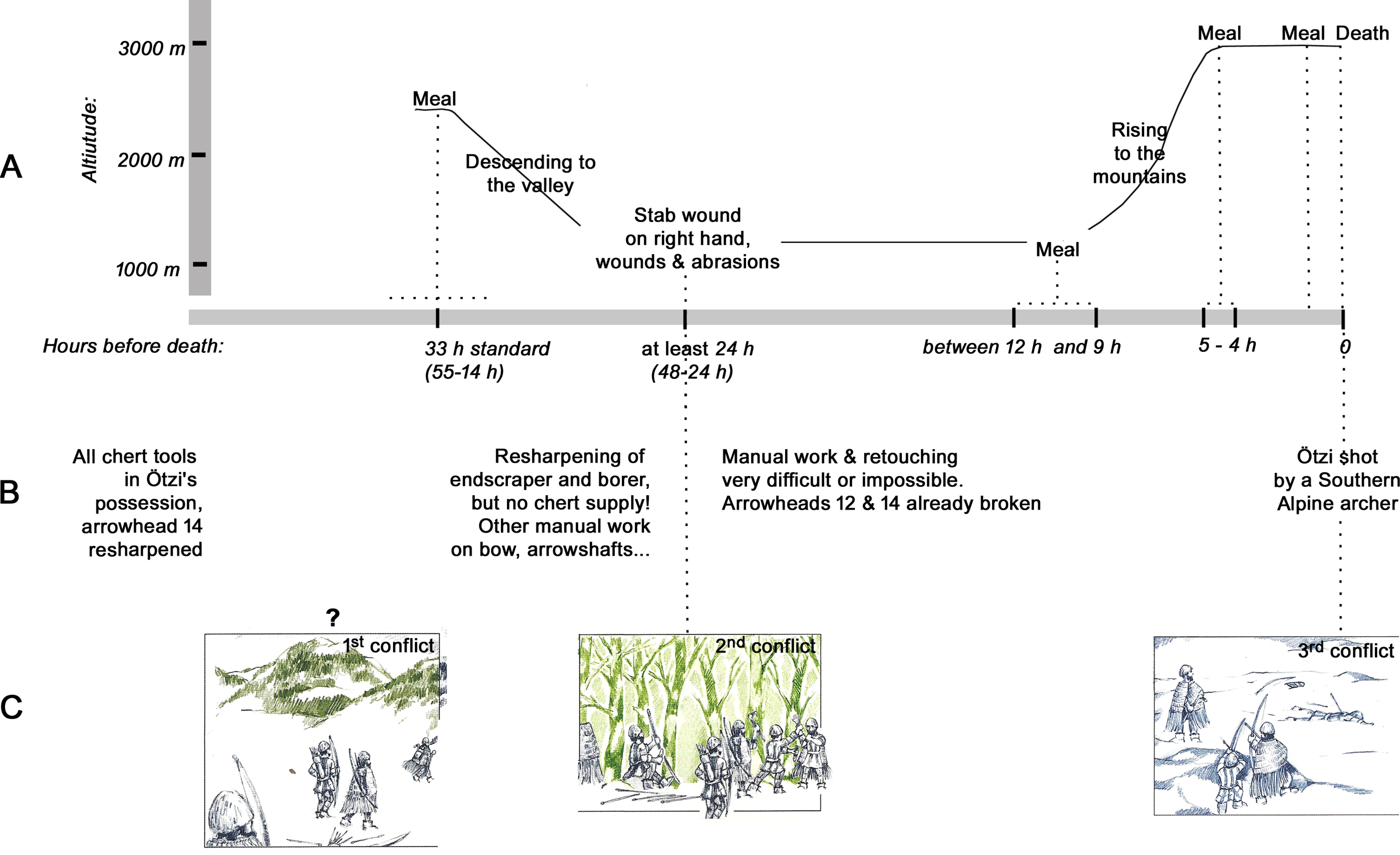 다만, 일부 연구자들은 외치가 발견된 장소가 아닌 다른 곳에서 사망한 뒤 옮겨져 매장되었을 가능성 등 다른 가설을 제시하기도 했으나,[90][110] 아직은 가설 단계에 머물러 있다.
