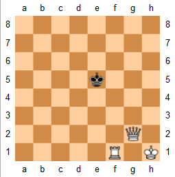 • 퀸 2개나 룩 2개, 또는 퀸 1개와 룩 1개의 조합은 킹이 공격에 가담하지 않더라도 체크메이트가 가능하다.