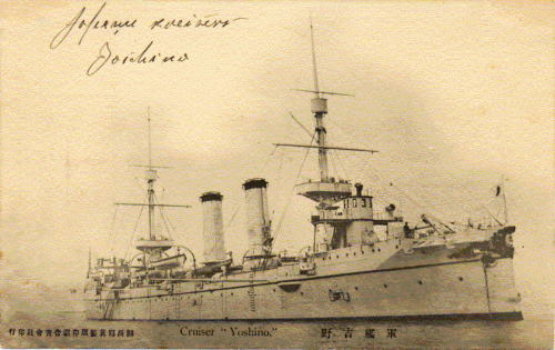 요시노는 당시 세계에서 가장 빠른 군함으로, 국민 모금으로 만들어졌다. 영국에서 회항할 때 훗날 함장이 되는 가와하라 요이치와 함께 위원으로 아키야마 사네유키도 동행했다.