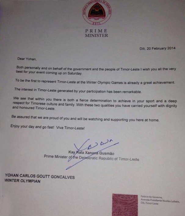 Yohan Goutt Goncalves: Today was qualification for World ski championships in Cortina and ... TIMOR-LESTE WILL BE REPRESENTED for the first time in Giant slalom ! Race is tomorrow wish me luck ! Vamos !