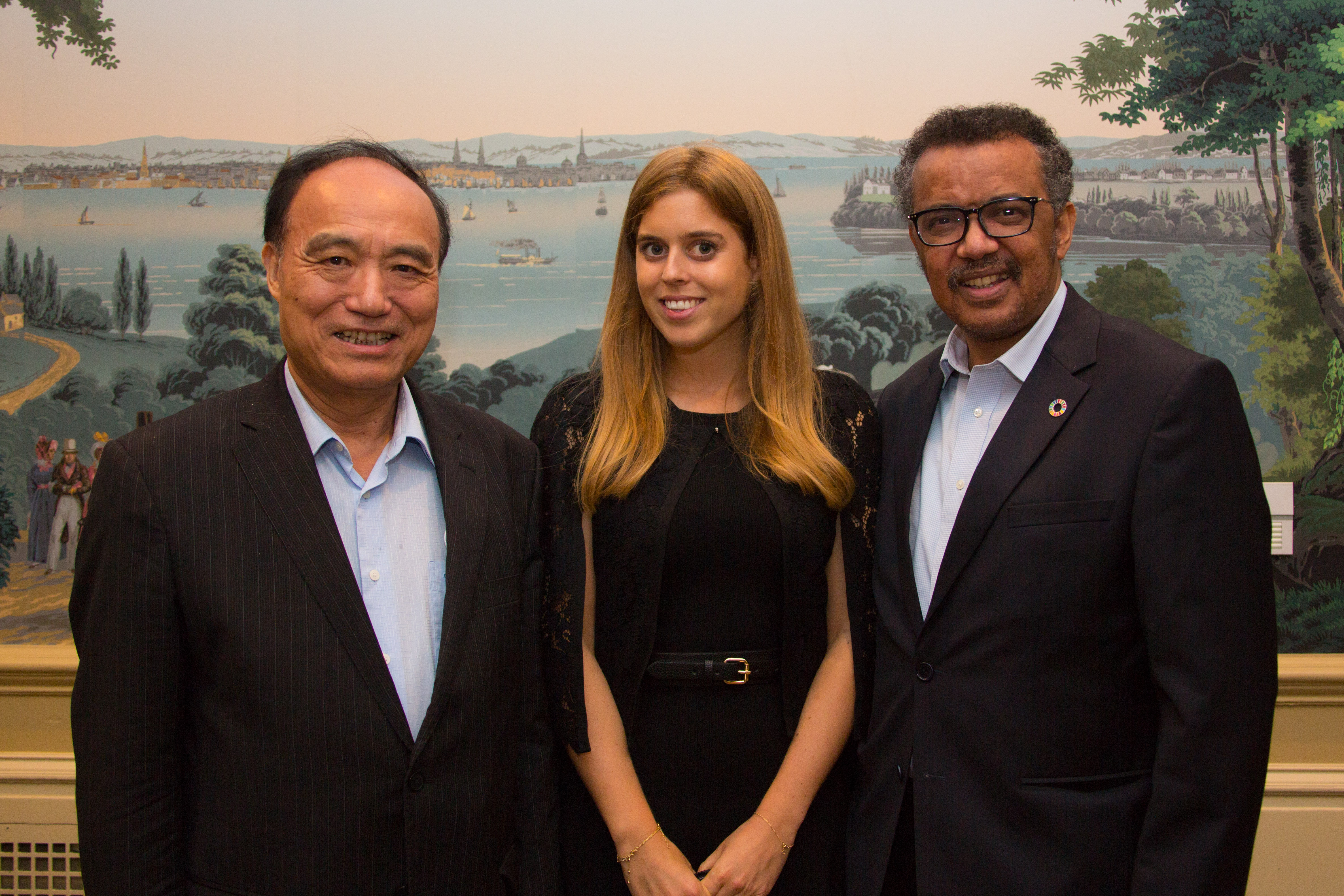 후린 자오, 베아트리스 공주, 테드로스 아드하놈과 함께, 2017년 9월 UN 광대역 통신 위원회 만찬