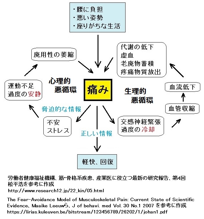 1993년 워델(Waddell) 등은 '불안-회피 신념 설문지'를 개발했다. 이 설문지를 이용한 연구 결과, 몸을 움직이는 것에 대한 불안-회피 신념은 노동 손실(일을 하지 못하게 되는 것)과 강한 상관관계가 있는 것으로 나타났다.[166]