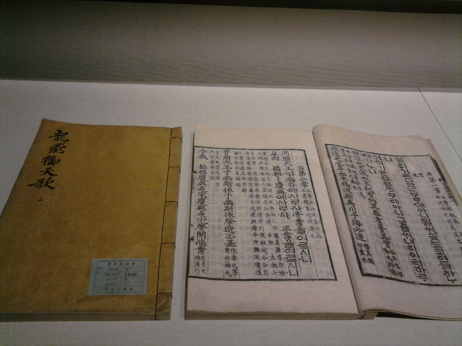 《용비어천가》는 한글 창제 이후 처음으로 간행된 문헌이자 악장(樂章)으로, 조선 건국이 하늘의 명에 따라 이루어진 위대한 업적임을 강조하며 왕조의 정통성을 확립하고자 하였다. 내용은 목조부터 태종에 이르는 조선 선대 6대 임금의 사적을 중국 고대 제왕들의 사례와 비교하며 노래하는 형식으로 구성되었다.[8][9]