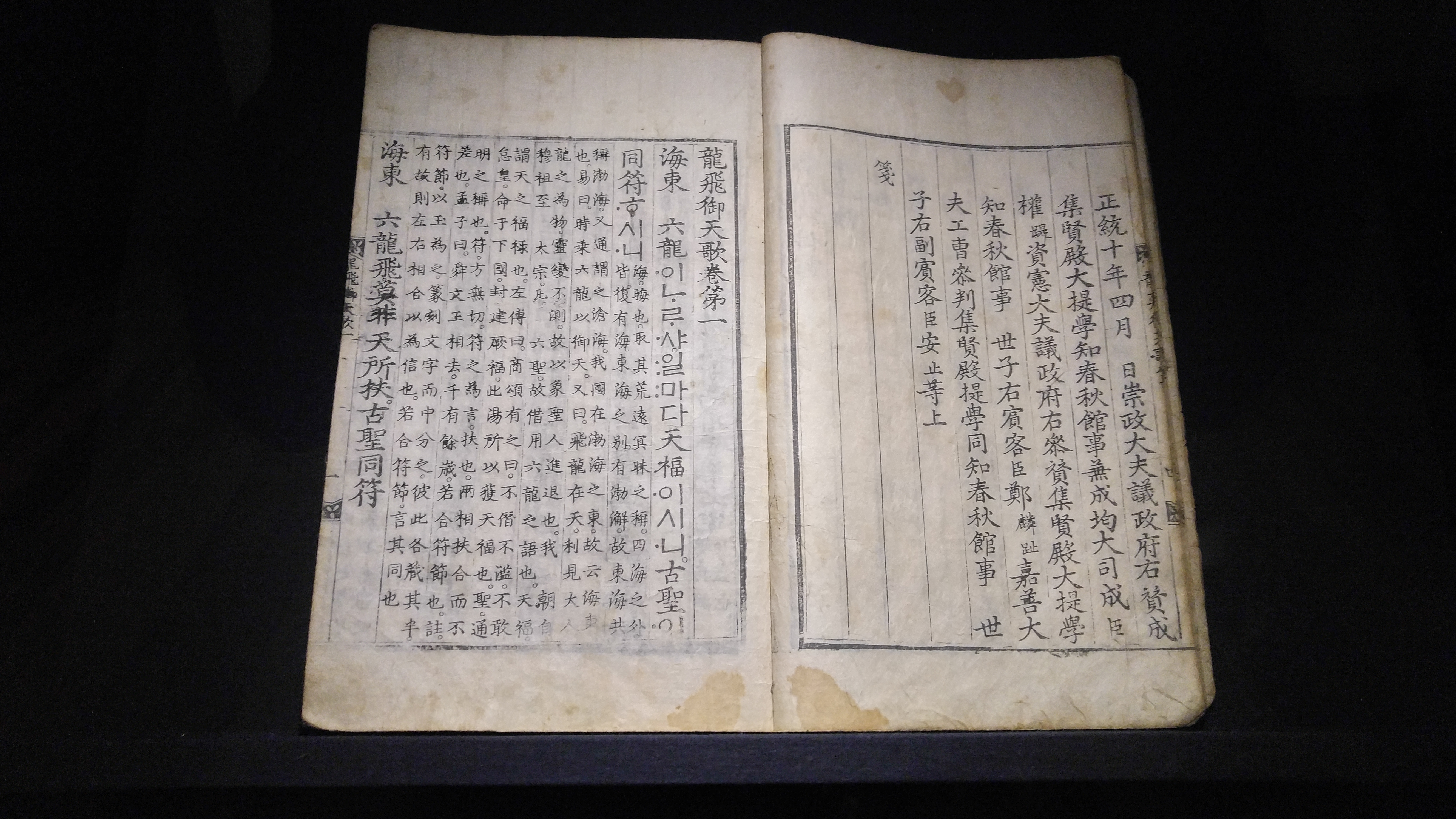 海해東동六육龍룡이ᄂᆞᄅᆞ샤일마다 天천福복이시니古고聖성이同동符부ᄒᆞ시니