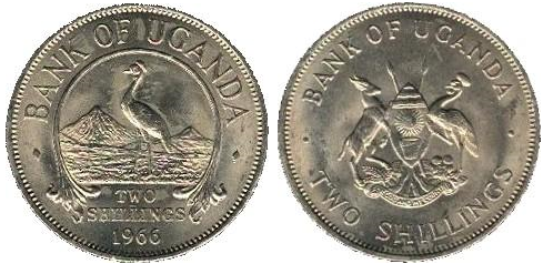 첫 우간다 실링 (UGS)은 1966년에 동아프리카 실링을 대체하였다. 높은 인플레이션으로 인해 1987년에 구 100 실링의 가치를 가진 새로운 실링 (UGX)이 도입되었다.[1]2. 2. 두 번째 실링 (UGX)