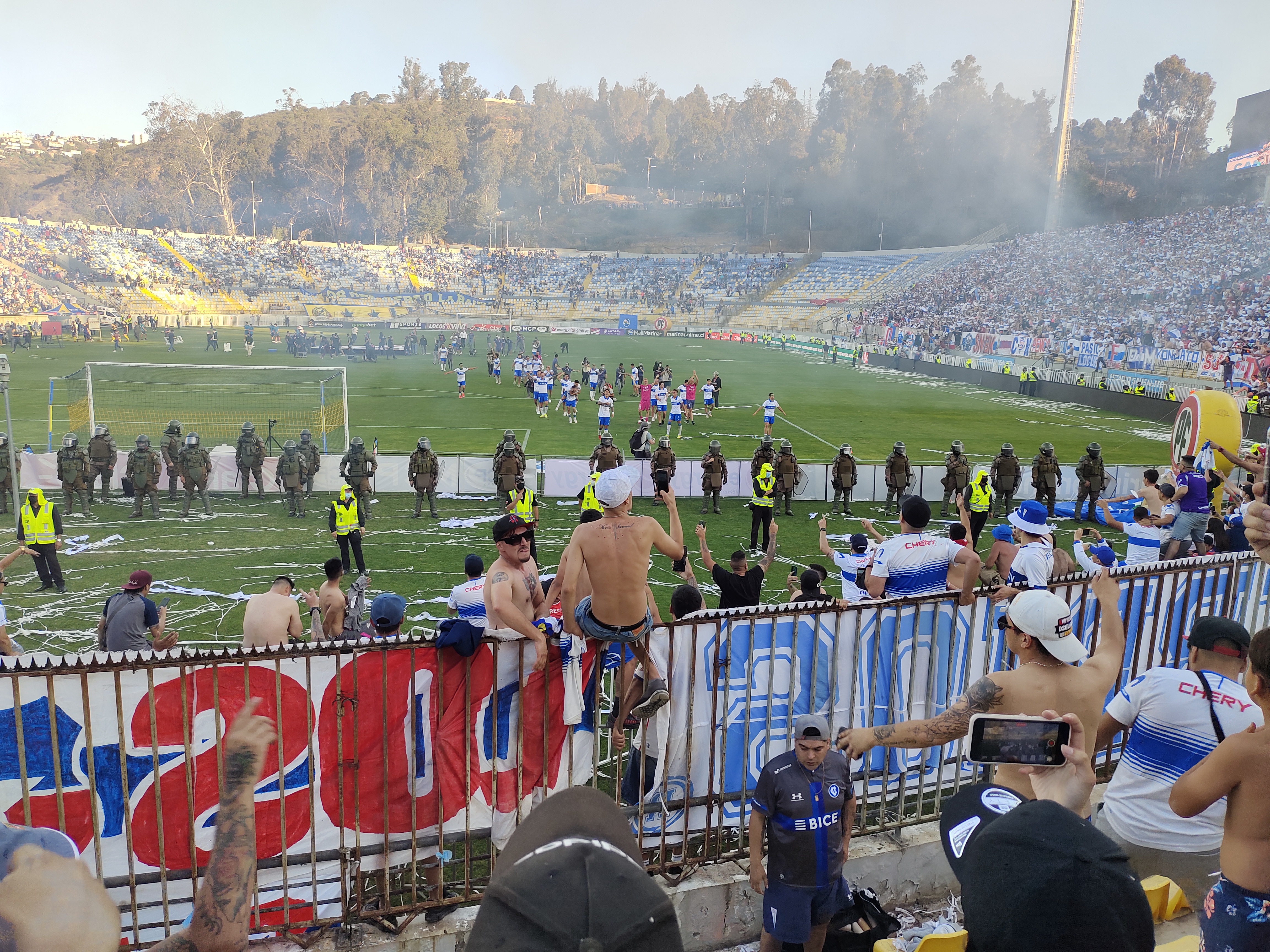 2018-2021 4연패 달성 후 우니베르시다드 카톨리카 선수들과 팬들의 축하 모습.