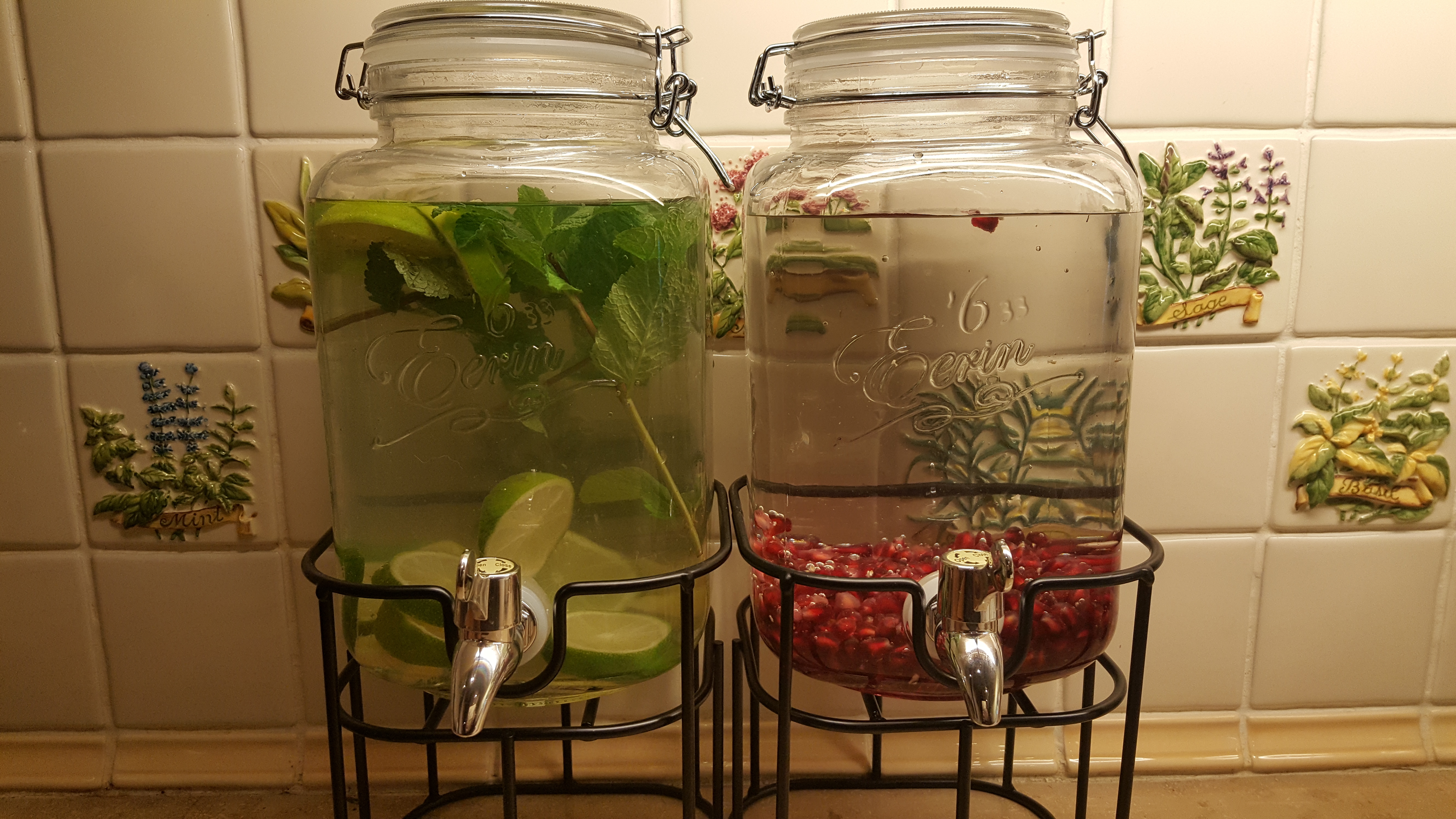 왼쪽: 라임, 생강, 민트 주입수 오른쪽: 석류 주입수