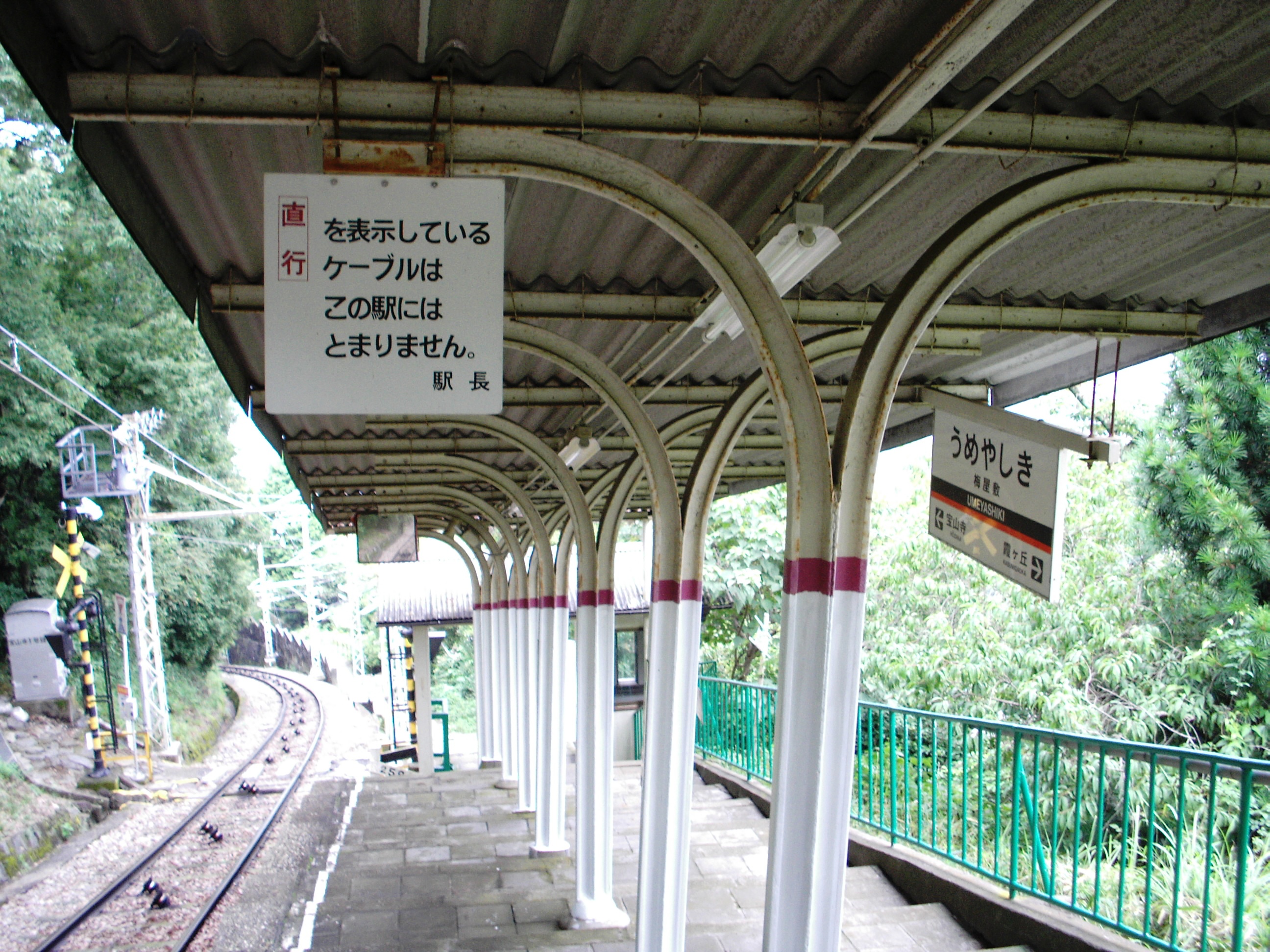 우메야시키역은 양방향 열차가 운행하는 단식 승강장이다.